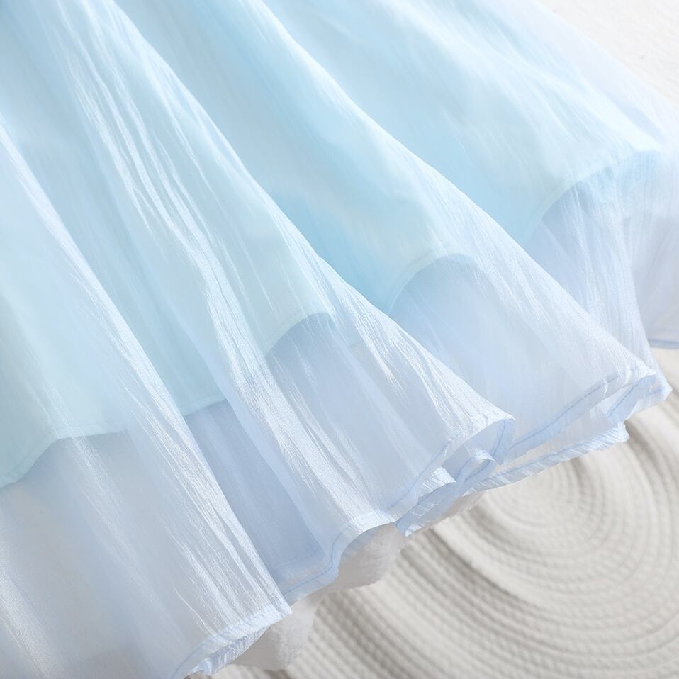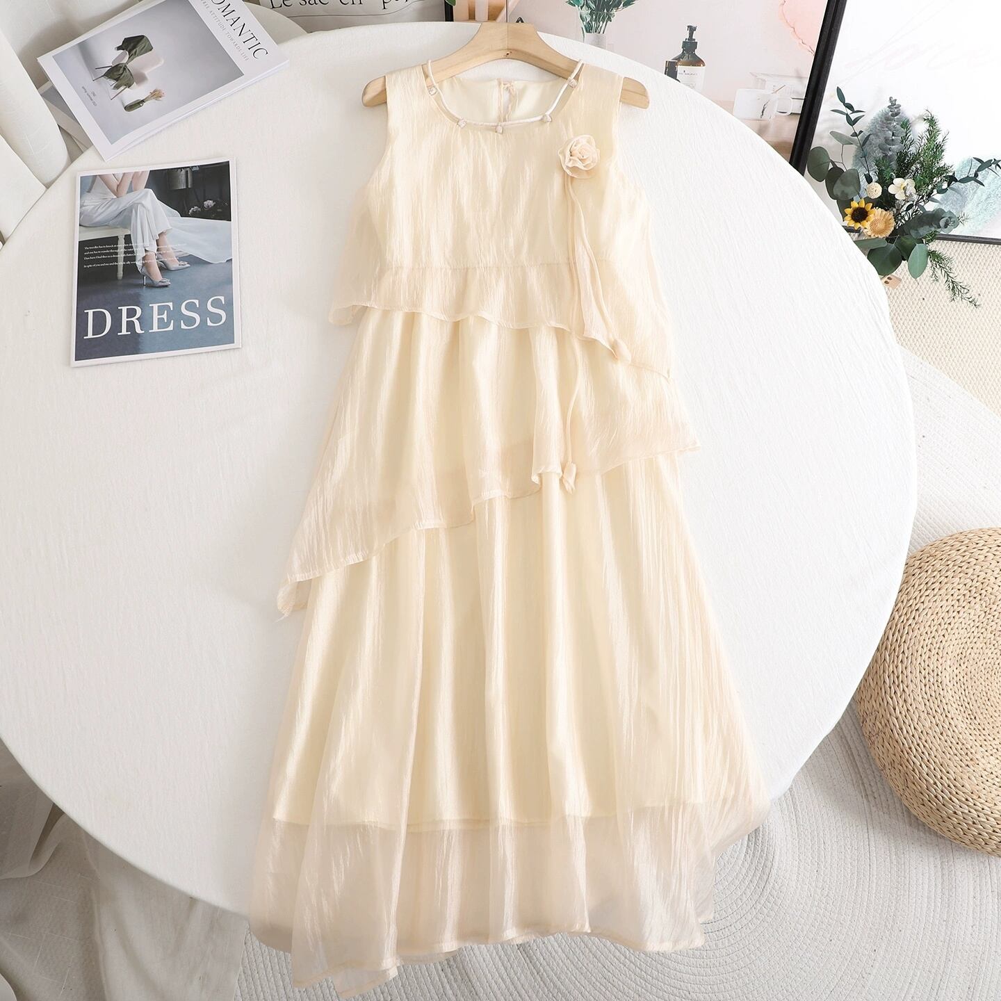 涼やかなシフォン素材が、夏の装いを軽やかに彩るノースリーブワンピース。