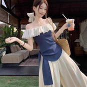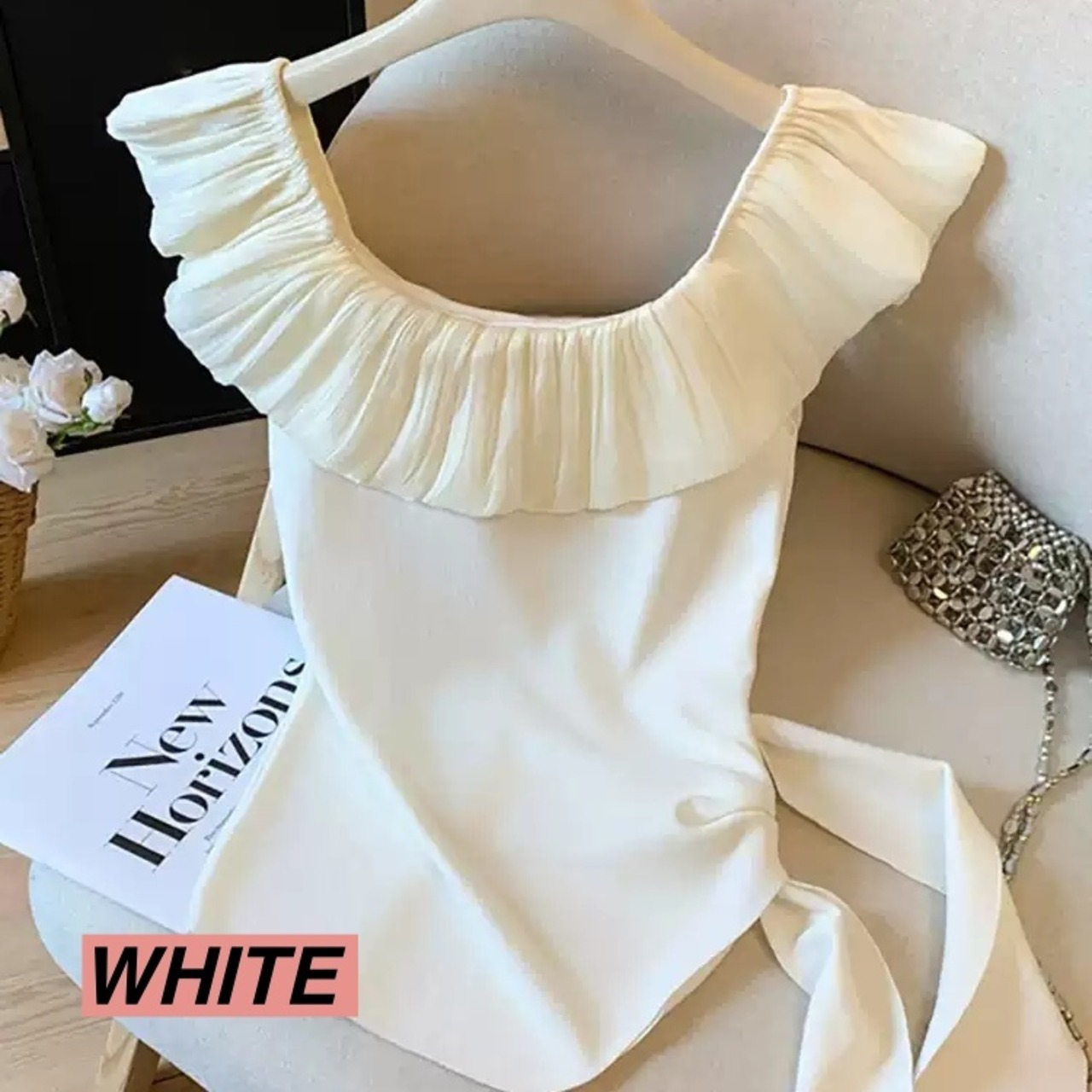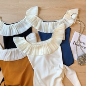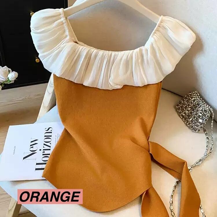 トップス レディース カットソー ショート丈 ノースリーブ 無地 春 夏 セミフレア フリル かわいい 大人可愛い きれいめ シンプル カジュアル 大人 おしゃれ レトロ キュート オフショルダー ショート 袖あり ホワイト ブラック ブルー オレンジ 大人カラー S M L XL 20代 30代 デート お出かけ 公園デビュー 女子会 アウトドア リゾート 旅行 海 着回し 普段使い 韓国 韓国系 オルチャン ファッション スタイル モテ 穴あき 定番 プチプラ 送料無料 トレンド 流行 インスタ映え | Rena 韓国ファッション レディースアパレル