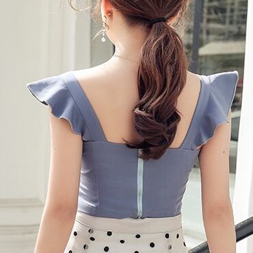 トップス レディース タンクトップ ショート丈 ノースリーブ 無地 春 夏 セミフレア フリル かわいい 大人可愛い きれいめ シンプル カジュアル 大人 おしゃれ レトロ キュート ショート 袖なし 白 ホワイト 青 ブルー くすみカラー 大人カラー S M L XL 20代 30代 デート お出かけ 公園デビュー 女子会 アウトドア リゾート 旅行 海 着回し 普段使い 韓国 韓国系 オルチャン ファッション コーデ スタイル モテ 穴あき 定番 プチプラ 送料無料 トレンド 流行 インスタ映え | Rena 韓国ファッション レディースアパレル