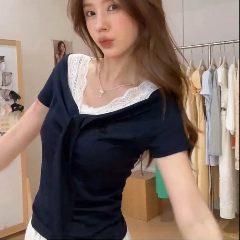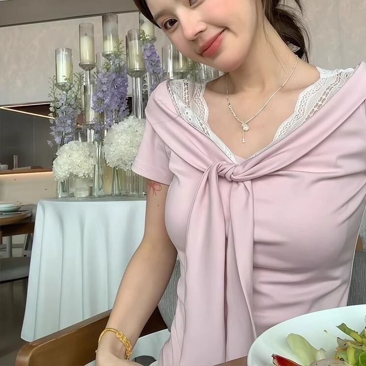 トップス レディース Tシャツ ショート丈 半袖 無地 春 夏 セミフレア フリル かわいい 大人可愛い きれいめ シンプル カジュアル 大人 おしゃれ レトロ ラブリー キュート Vネック ショート 袖あり ピンク ネイビー くすみカラー 大人カラー S M L XL 20代 30代 デート お出かけ 公園デビュー 女子会 アウトドア リゾート 旅行 海 着回し 普段使い 韓国 韓国系 オルチャン ファッション コーデ スタイル モテ 定番 プチプラ 送料無料 トレンド 流行 インスタ映え | Rena 韓国ファッション レディースアパレル