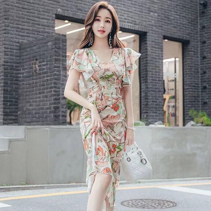 ワンピース レディース フレアワンピース マキシ丈 半袖 柄 花柄 春 夏 セミフレア フリル かわいい 大人可愛い きれいめ シンプル カジュアル 大人 おしゃれ 大人可愛い 大人女子 ラブリー キュート クール セクシー Vネック マキシ 袖あり くすみカラー 大人カラー S M L XL 2XL ゆったり 20代 30代 デート お出かけ 女子会 休日 アウトドア リゾート 着回し 韓国 韓国系 オルチャン ファッション コーデ スタイル 楽ちん モテ 送料無料 トレンド 流行 インスタ映え | Rena 韓国ファッション レディースアパレル