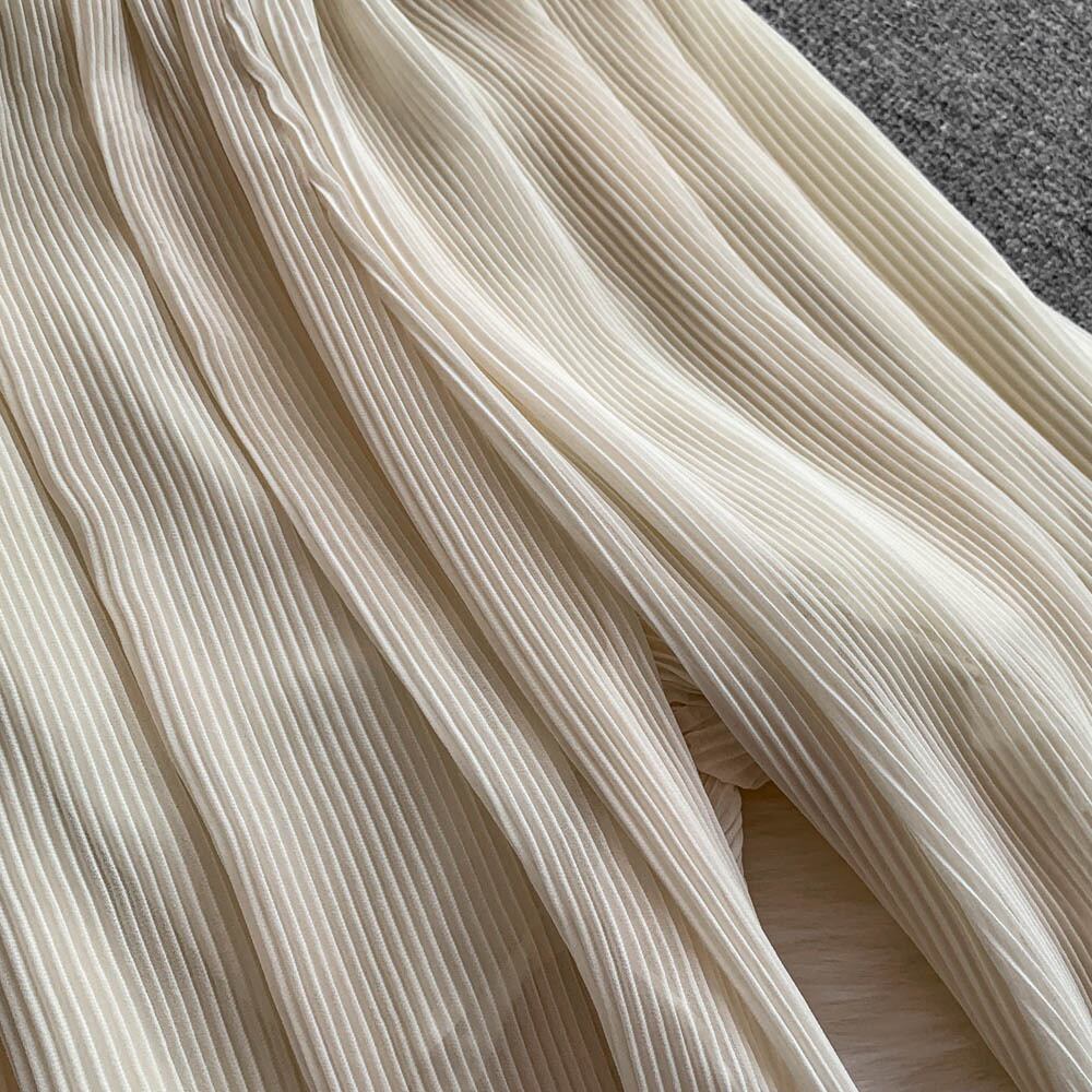 エレガントな雰囲気漂う、プリーツ加工のブラウス&ワイドパンツセットです。