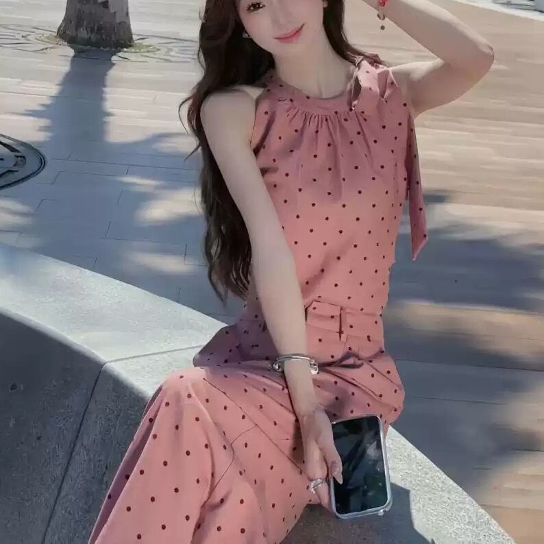 セットアップ レディース シャツ ストレートパンツ ショート丈 ノースリーブ ドット 水玉 春 夏 セミフレア かわいい 大人可愛い きれいめ シンプル カジュアル 大人 上品 おしゃれ 大人可愛い キュート 個性的 Uネック 襟付き 袖なし ピンク パステルカラー くすみカラー 大人カラー S M L XL 2XL 20代 30代 学生 通学 デート お出かけ 女子会 休日 アウトドア 着回し 普段使い 韓国 韓国系 コーデ スタイル 楽ちん モテ 定番 送料無料 トレンド 流行 インスタ映え