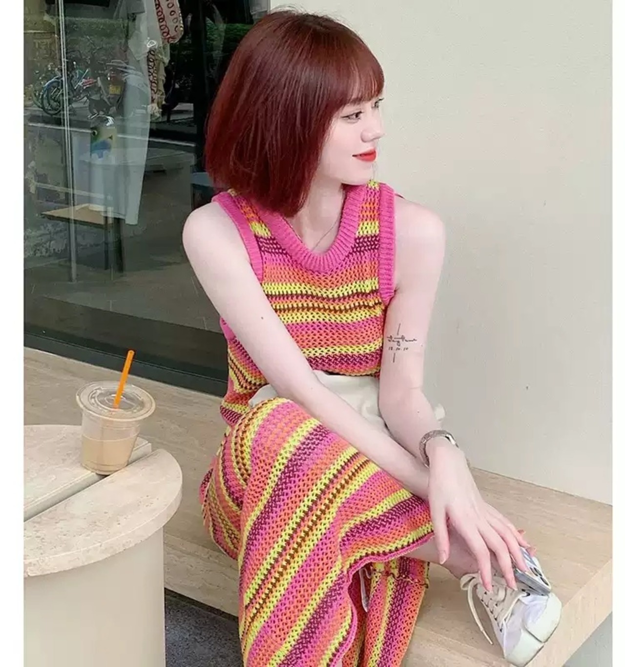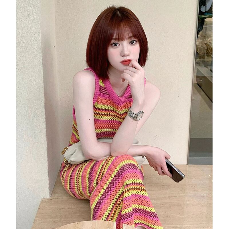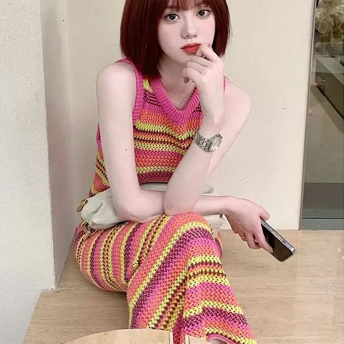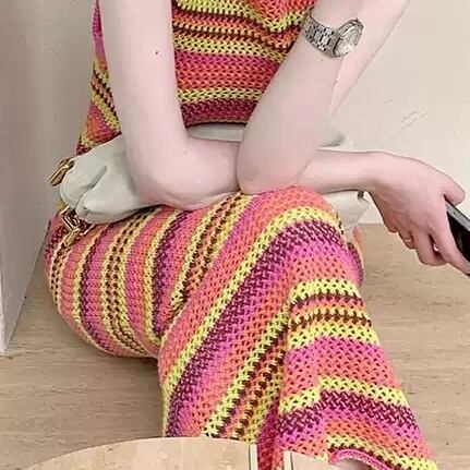 ワンピース レディース ニット ニットワンピース ロング丈 ノースリーブ 柄 春 夏 秋 セミフレア かわいい 大人可愛い きれいめ シンプル カジュアル 大人 おしゃれ レトロ ラフ キュート Uネック 袖なし パステルカラー くすみカラー 大人カラー ベイクドカラー 春カラー S M L XL 20代 30代 通学 デート お出かけ 公園デビュー 女子会 休日 リゾート 旅行 着回し 普段使い 韓国 韓国系 オルチャン ファッション コーデ モテ プレゼント 送料無料 トレンド 流行 インスタ映え