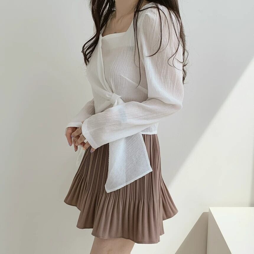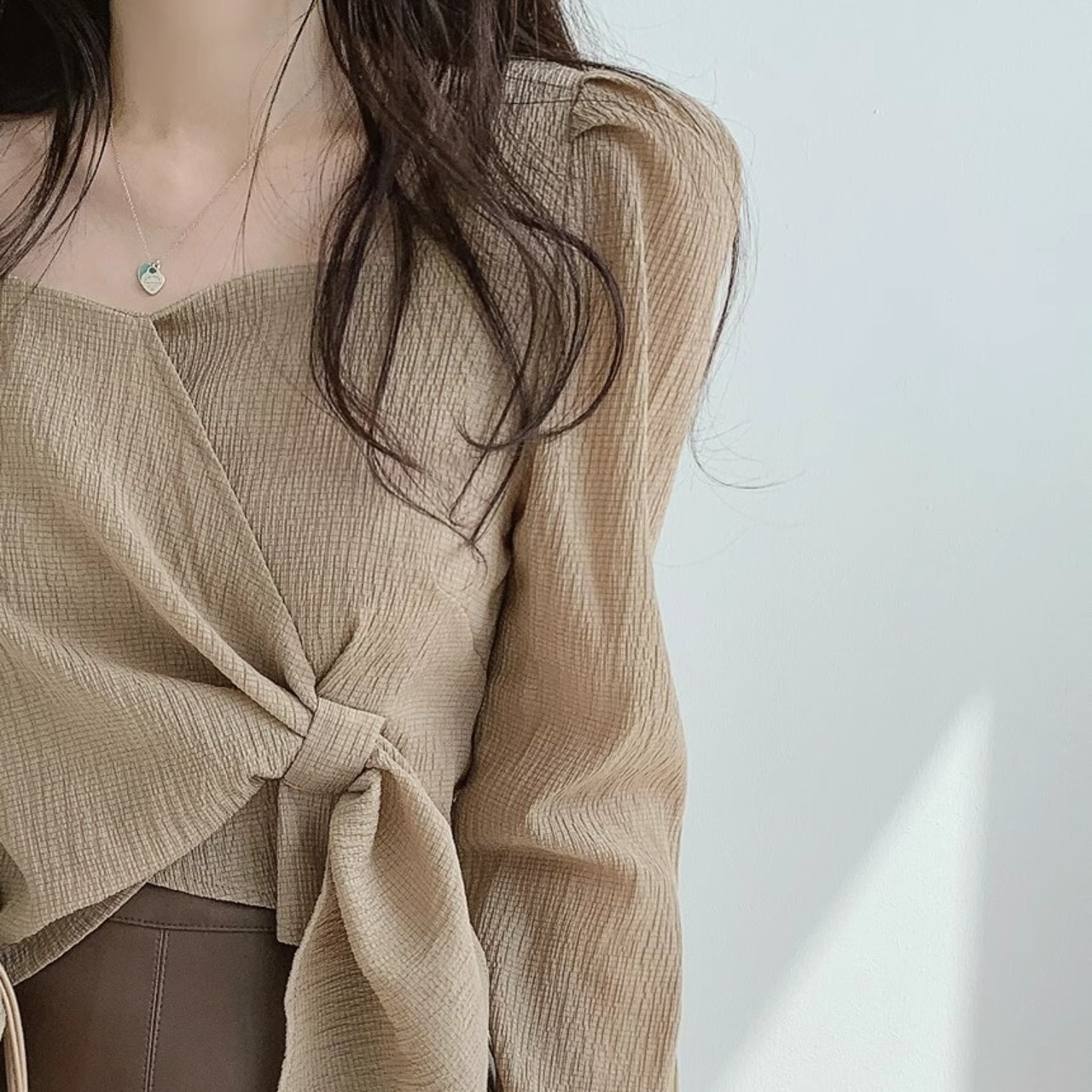 トップス レディース ブラウス ショート丈 長袖 柄 春 秋 冬 セミフレア かわいい 大人可愛い きれいめ シンプル カジュアル 大人 おしゃれ レトロ ラフ キュート スクエアネック ショート 袖あり 白 ホワイト 黒 ブラック カーキ くすみカラー 大人カラー ベイクドカラー S M L XL 2XL 20代 30代 学生 通学 デート お出かけ 女子会 休日 着回し 普段使い 韓国 韓国系 オルチャン コーデ スタイル 楽ちん モテ プレゼント 送料無料 トレンド 流行 インスタ映え
