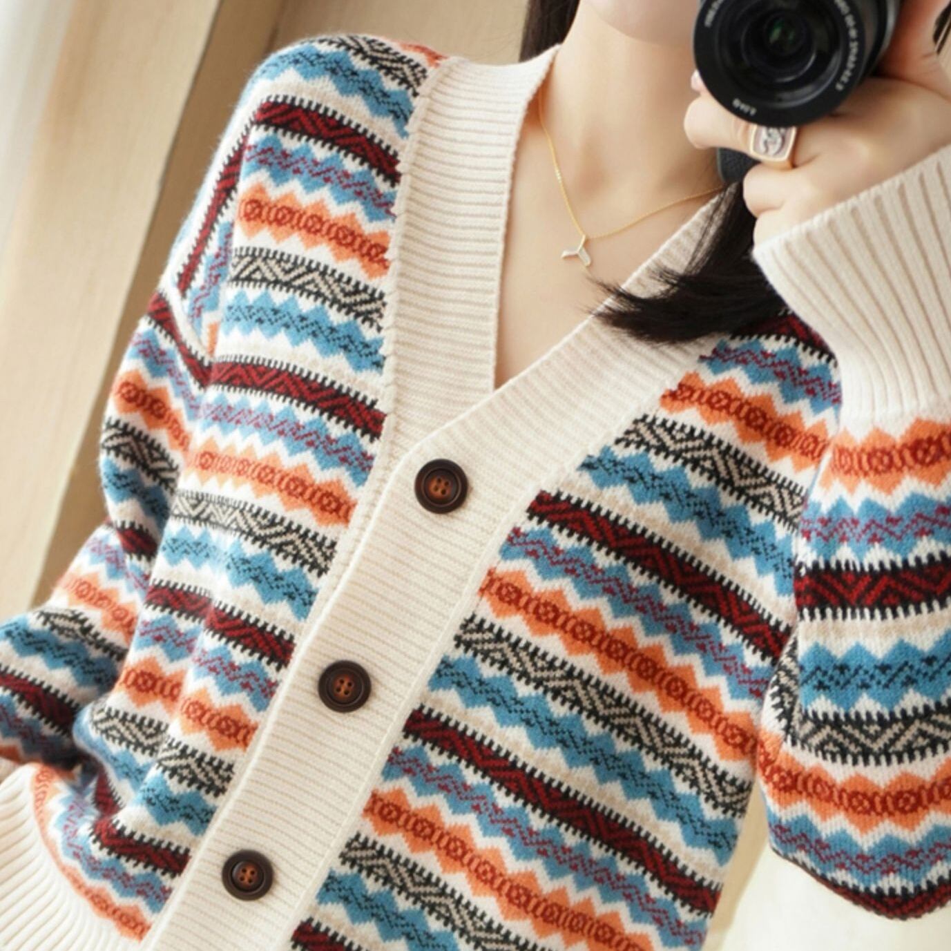 トップス レディース ニット カーディガン ショート丈 長袖 柄 春 冬 セミフレア かわいい 大人可愛い きれいめ シンプル カジュアル 大人 おしゃれ レトロ ラフ キュート Vネック 袖あり 青 ブルー ベージュ くすみカラー 大人カラー S M L XL 2XL 3XL 大きいサイズ 20代 30代 学生 通学 デート お出かけ 女子会 休日 着回し 普段使い 韓国 韓国系 オルチャン ファッション コーデ スタイル 楽ちん あったか モテ プレゼント 送料無料 トレンド 流行 インスタ映え