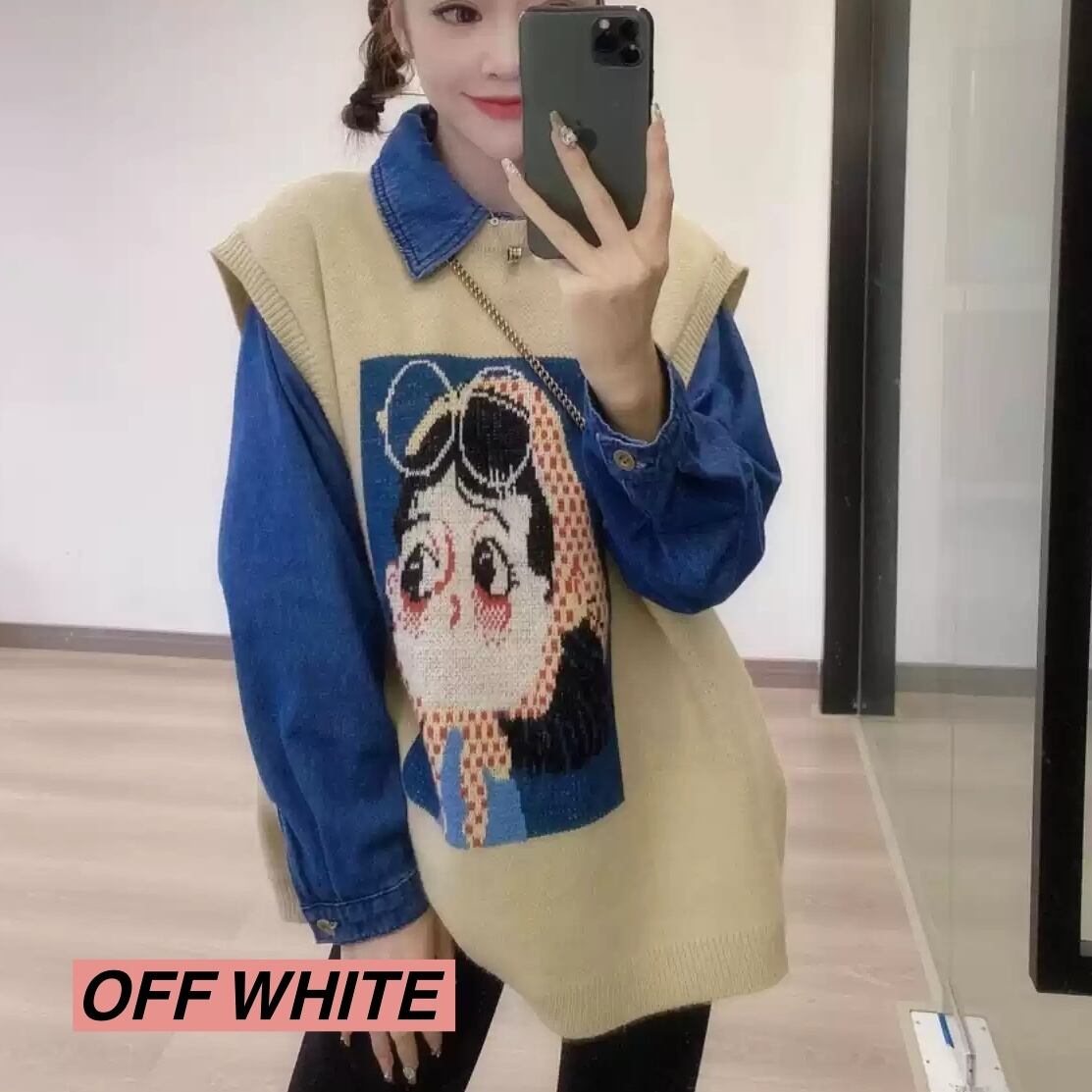 着るだけで気分が上がる、キュートなキャラクターニットベスト。目を惹くユニークなイラストが、個性と遊び心を演出し、いつものコーディネートに新鮮な風を吹き込みます。デニムシャツとレイヤードされたデザインは、一枚でこなれたおしゃれが完成。着るだけで笑顔になれる、特別なアイテムです。
