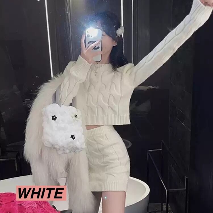 セットアップ レディース ニット ショート丈 長袖 無地 春 秋 冬 セミフレア かわいい 大人可愛い きれいめ シンプル カジュアル 大人 おしゃれ レトロ ラフ キュート Uネック ショート 袖あり 白 ホワイト 黒 ブラック 灰色 グレー カーキ ピンク くすみカラー S M L XL 20代 30代 学生 通学 デート お出かけ 女子会 休日 着回し 普段使い 韓国 韓国系 オルチャン ファッション コーデ スタイル 楽ちん あったか モテ プレゼント 送料無料 トレンド 流行 インスタ映え