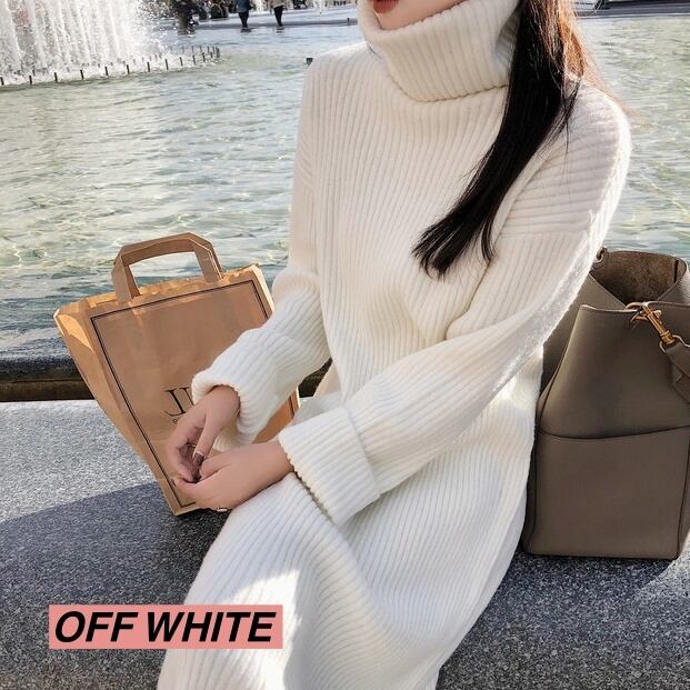 ワンピース レディース ニット ニットワンピース ロング丈 長袖 無地 春 秋 冬 かわいい 大人可愛い きれいめ シンプル カジュアル 大人 おしゃれ レトロ ラフ キュート ハイネック ロング 袖あり 黒 ブラック オフホワイト くすみカラー S M L XL 2XL 20代 30代 学生 通学 デート お出かけ 公園デビュー 女子会 休日 着回し 普段使い 韓国 韓国系 オルチャン ファッション コーデ スタイル 楽ちん あったか 暖かい モテ プレゼント 送料無料 トレンド 流行 インスタ映え
