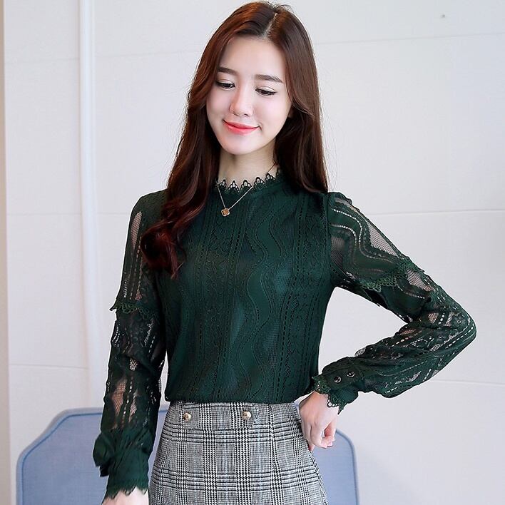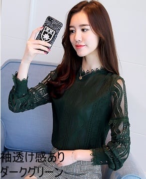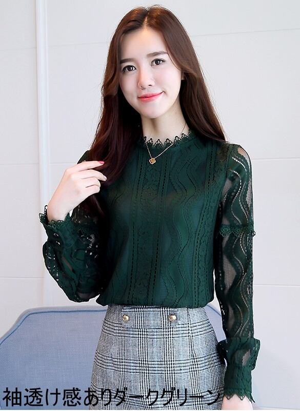 レディース トップス シャツ ブラウス 白トップス 袖あり 長袖 スリム 細身 レース 大人可愛い きれいめ 大人 上品 おしゃれ 大人可愛い 大人女子 S M L XL 2XL 3XL 4XL 白 ホワイト 黒 ブラック 緑 グリーン 春 秋 20代 30代 着回し 普段使い 送料無料 | Rena 韓国ファッション レディースアパレル