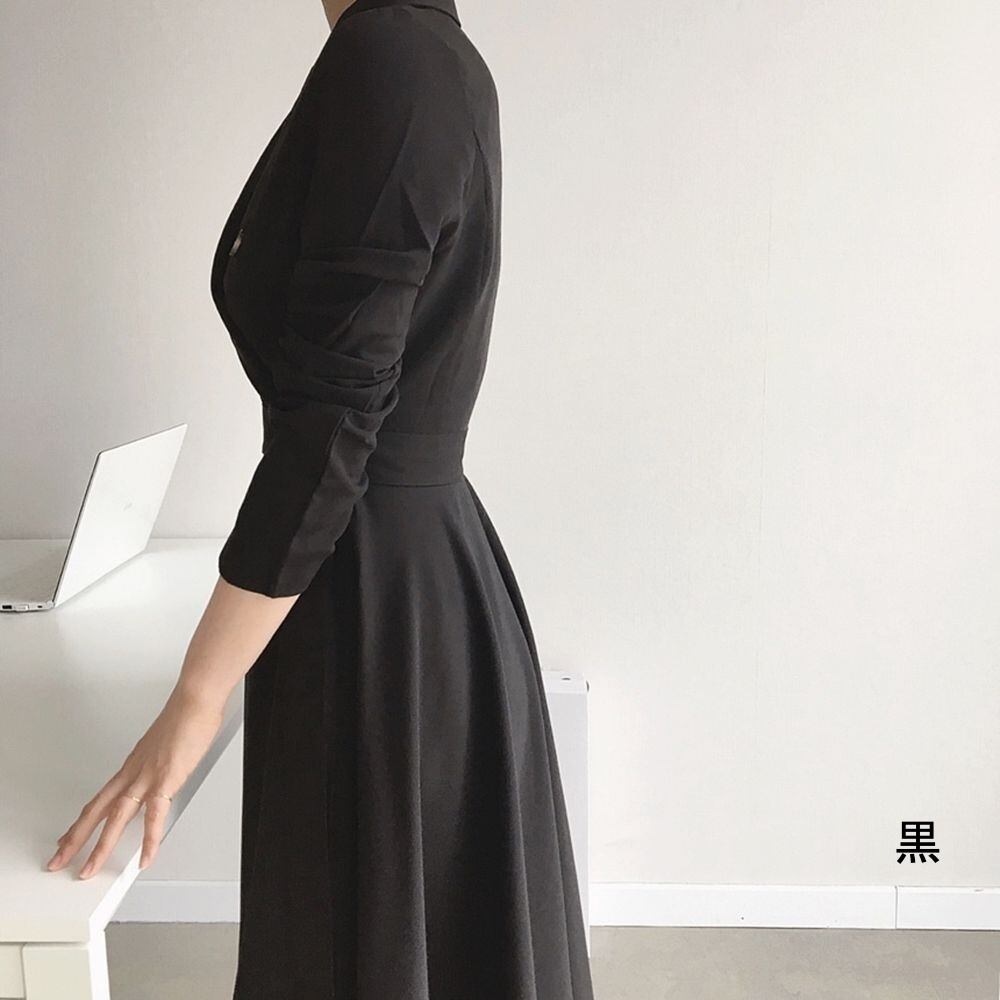 レディース ワンピース ロング丈 袖あり 七分袖 Vネック 大人可愛い きれいめ シンプル 大人 上品 おしゃれ 大人女子 こなれ感 クール エレガント S M L 黒 ベージュ 春 秋 20代 30代 40代 女性用 ママ オフィス ビジネス OL 通勤 学生 デート お出かけ 女子会 休日 旅行 普段使い 定番 送料無料 | Rena 韓国ファッション レディースアパレル