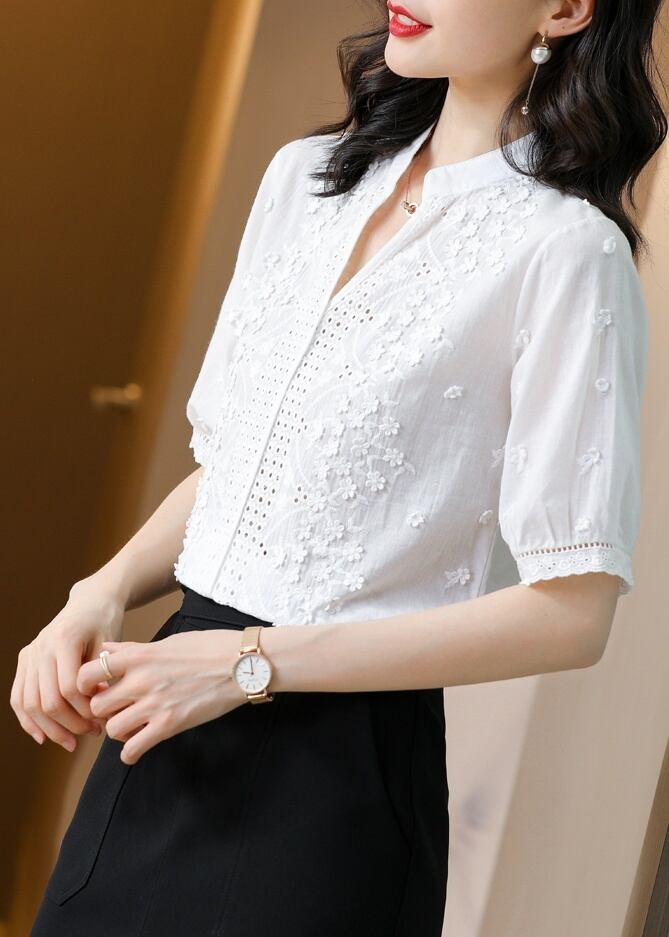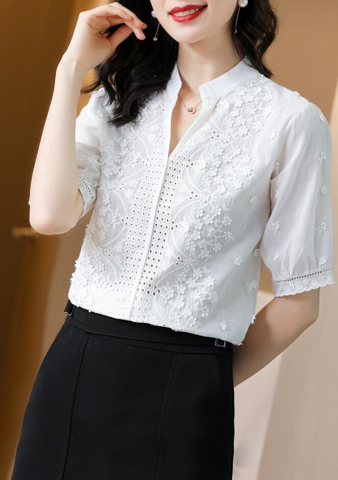 レディース トップス シャツ 5分袖 Vネック レース 刺繍 綿 きれいめ カジュアル 大人 上品 おしゃれ 大人女子 S M L XL 2XL 3XL 女性用 オフィス OL 通勤 送料無料 | Rena 韓国ファッション レディースアパレル