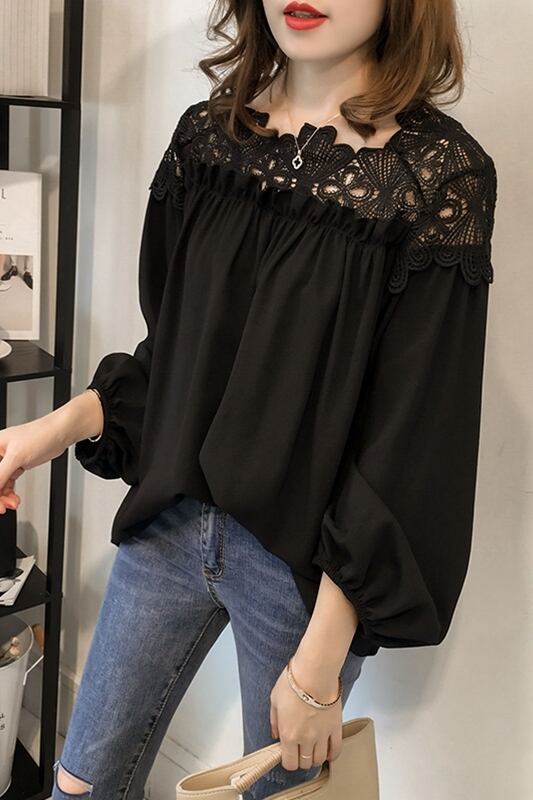 レディース トップス ブラウス カットソー 白トップス 袖あり 長袖 ラウンドネック 切り替えデザイン レース 薄手 かわいい 大人可愛い きれいめ 大人 上品 おしゃれ お洒落 大人可愛い 大人女子 こなれ感 キュート セクシー S M L XL 2XL 3XL 白 ホワイト 黒 ブラック 柄 春 夏 秋 10代 20代 30代 女性用 女の子 デート お出かけ 女子会 休日 着回し 普段使い コーデ スタイル モテ 送料無料 トレンド | Rena 韓国ファッション レディースアパレル