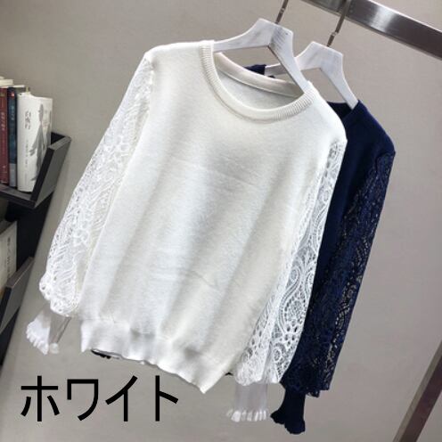 レディース トップス ニットソー 袖あり 長袖 ボリューム袖 ラウンドネック ストレート 切り替えデザイン レース 綿 ニット かわいい おしゃれ お洒落 レトロ ラブリー キュート ガーリー エレガント 白 ホワイト 黒 ブラック 青 ブルー 緑 グリーン 紫 パープル 灰色 グレー ピンク ネイビー くすみカラー 春カラー 秋カラー カラバリ 柄 春 秋 10代 20代 女性用 デート お出かけ 女子会 休日 韓国系 オルチャン ファッション コーデ スタイル 送料無料 トレンド 流行 | Rena 韓国ファッション レディースアパレル