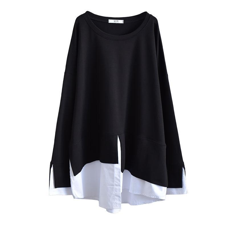 レディース トップス シャツ カットソー トレーナー ビッグT ミディアム丈 袖あり 長袖 萌袖 ラウンドネック ワイド サイドスリット ドッキング 大人可愛い きれいめ シンプル カジュアル 大人 おしゃれ こなれ感 ラフ メンズライク ルーズ クール M L XL 黒 ブラック 大人カラー モノトーン 無地 春 20代 30代 40代 女性用 デート お出かけ 公園デビュー 休日 アウトドア 旅行 重ね着 コーデ スタイル 楽ちん 体系カバー 脚長 送料無料 トレンド 流行 ゆったり | Rena 韓国ファッション レディースアパレル