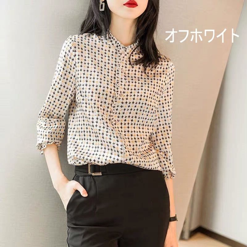 レディース トップス シャツ ブラウス 長袖 スタンドカラー 前開き 大人可愛い きれいめ シンプル 大人 上品 おしゃれ かっこいい アジアン 大人可愛い 大人女子 クール モード系 M L XL 2XL ホワイト オフホワイト 柄 花柄 春 秋 20代 30代 40代 オフィス ビジネス OL 通勤 デート お出かけ 女子会 休日 旅行 普段使い 韓国系 ファッション 送料無料 | Rena 韓国ファッション レディースアパレル