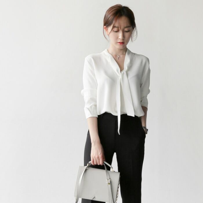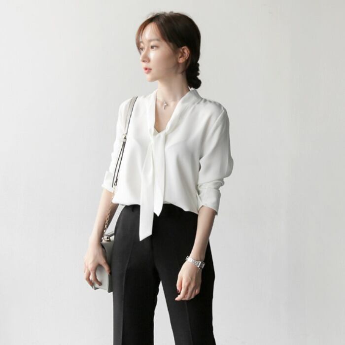 レディース トップス ブラウス 白トップス 袖あり 7分袖 ストレート シフォン リボン きれいめ シンプル 大人 上品 おしゃれ お洒落 大人女子 こなれ感 フォーマル とろみ感 S M L 白 無地 春 夏 入学式 入園式 卒業式 卒園式 2021 10代 20代 30代 女性用 ママ オフィス ビジネス OL 通勤 パーティー リクルート ファッション コーデ モテ 定番 送料無料 トレンド 流行 | Rena 韓国ファッション レディースアパレル