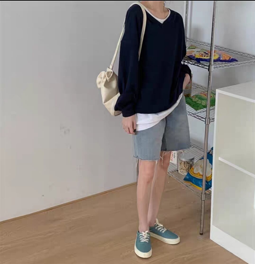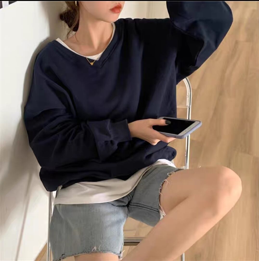 レディース トップス セーター トレーナー ビッグT 袖あり 長袖 ボリューム袖 Vネック ワイド かわいい 大人可愛い きれいめ シンプル カジュアル おしゃれ こなれ感 ラフ ゆったり 10代 20代 30代 男女兼用 ママ パパ ファッション プチプラ 送料無料 トレンド 流行 | Rena 韓国ファッション レディースアパレル