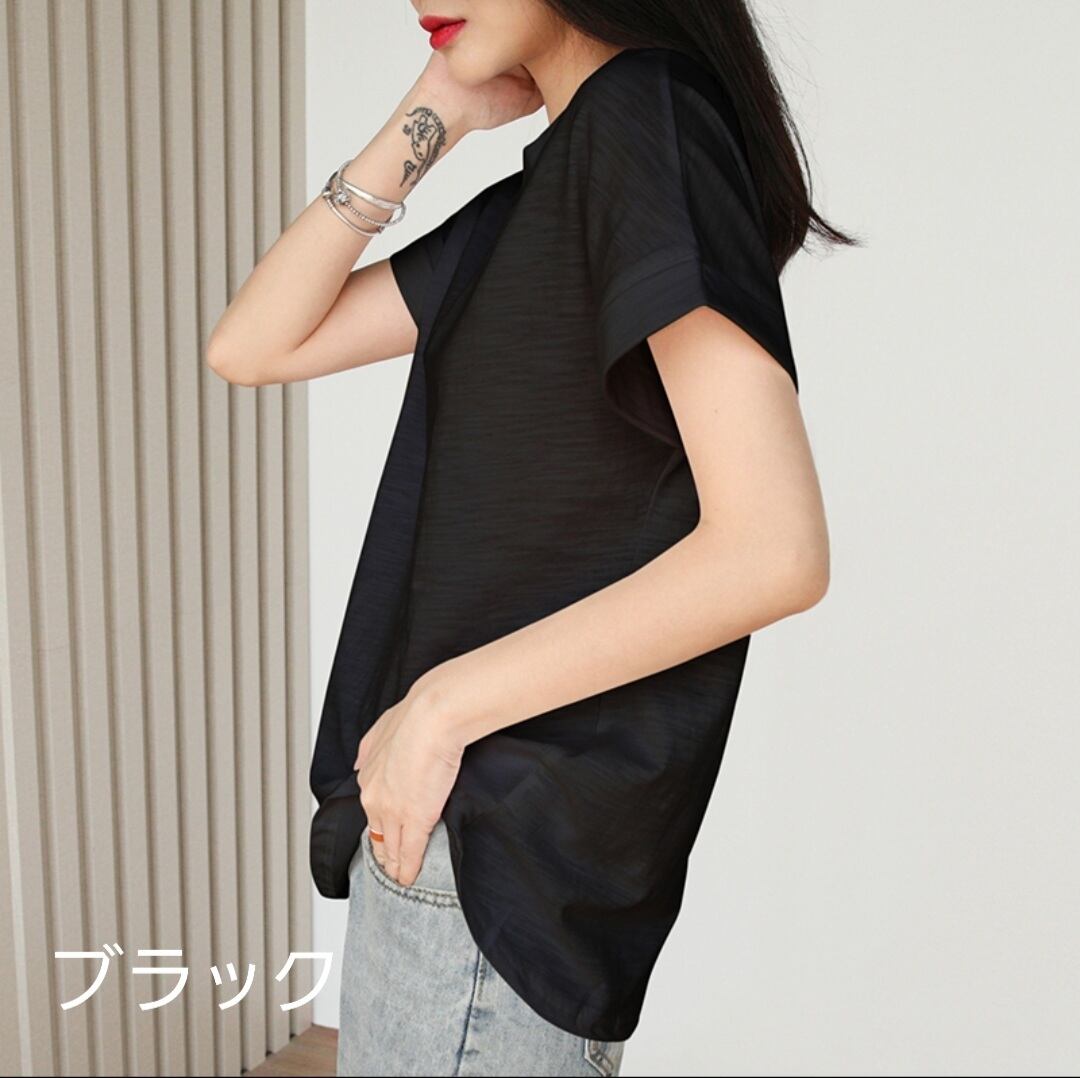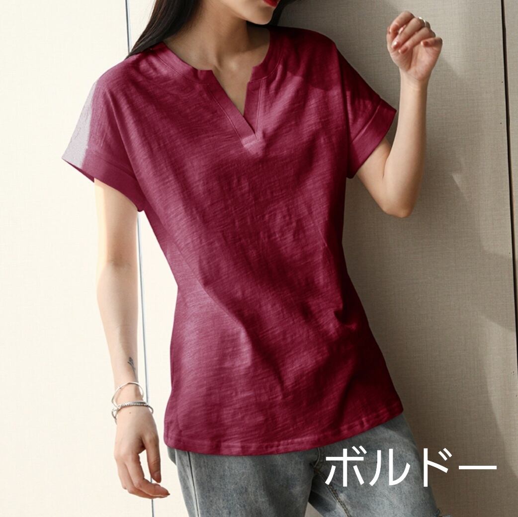 レディース トップス Tシャツ シャツ 袖あり 半袖 Vネック かわいい 大人可愛い きれいめ シンプル カジュアル 大人 おしゃれ 大人女子 ホワイト ブラック レッド ピンク 無地 春 夏 オフィス ビジネス OL 通勤 お出かけ 女子会 休日 韓国 オルチャン ファッション プチプラ 送料無料 トレンド 流行 | Rena 韓国ファッション レディースアパレル