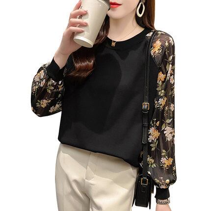 レディース トップス 袖あり 長袖 シフォン かわいい 大人可愛い きれいめ 上品 おしゃれ エレガント S M L XL ブラック ホワイト 柄 花柄 通勤 通学 デート お出かけ 女子会 休日 モテ 送料無料 | Rena 韓国ファッション レディースアパレル