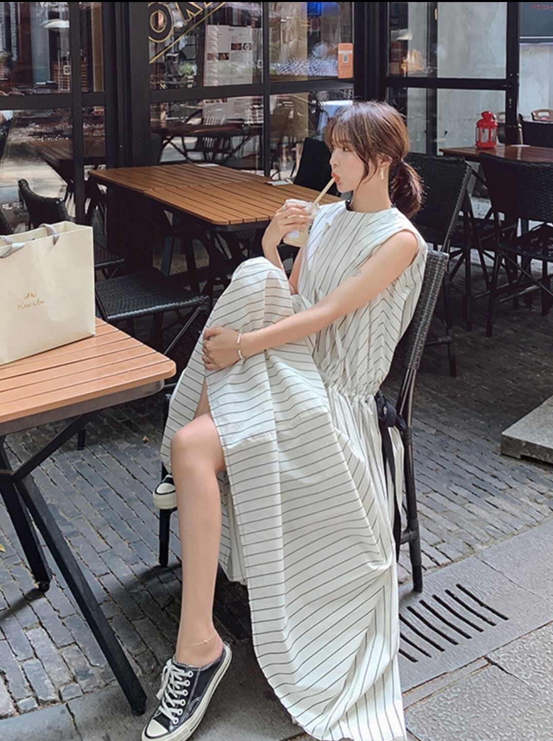 レディース ワンピース シャツ ブラウス ロング マキシ マキシ丈 袖なし ノースリーブ フレア かわいい 大人可愛い きれいめ シンプル カジュアル 大人 上品 おしゃれ 大人女子 クール セクシー 抜け感 S M L XL ゆったり 柄 ストライプ 春 夏 ママ マタニティ オフィス ビジネス OL 通勤 お出かけ 女子会 休日 リゾート 韓国 オルチャン ファッション 楽ちん プチプラ 送料無料 トレンド 流行 | Rena 韓国ファッション レディースアパレル