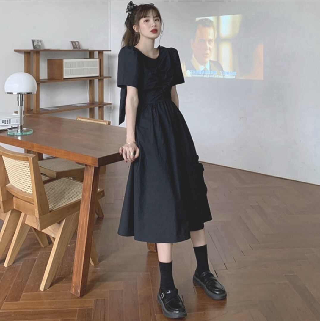 レディース ワンピース 膝下 ミモレ ロング 袖あり 半袖 5分袖 Uネック ラウンドネック 裾フレア リボン かわいい 大人可愛い きれいめ シンプル カジュアル 大人 上品 おしゃれ 大人女子 こなれ感 クール セクシー 抜け感 無地 春 夏 2021 ママ オフィス ビジネス OL 通勤 お出かけ 女子会 休日 パーティー 旅行 着回し 韓国 オルチャン ファッション コーデ スタイル 美脚 脚長 プチプラ 送料無料 トレンド 流行 インスタ映え | Rena 韓国ファッション レディースアパレル