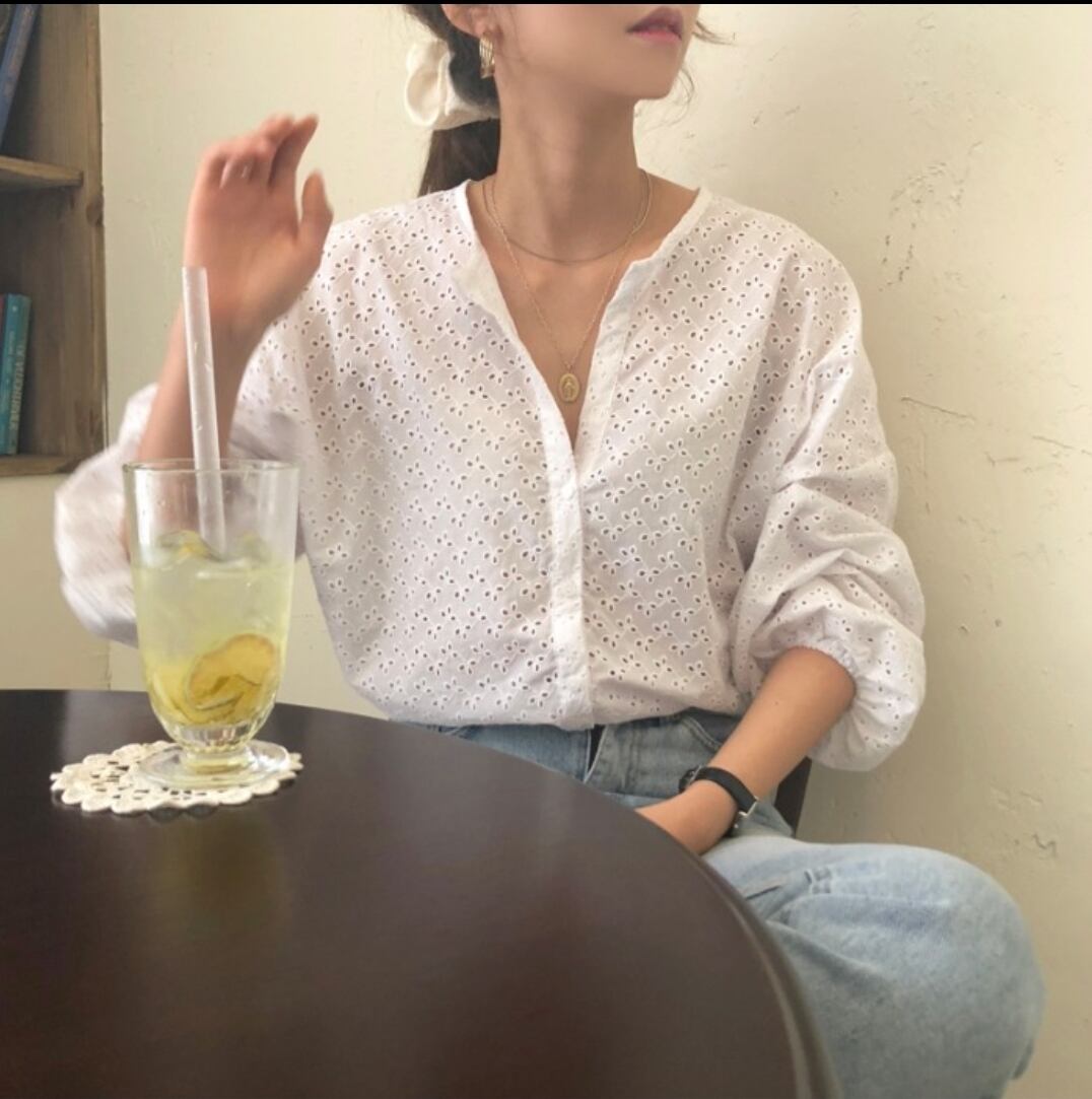 レディース トップス シャツ 袖あり 長袖 レース かわいい 大人可愛い きれいめ シンプル カジュアル 大人 上品 おしゃれ 大人女子 こなれ感 クール セクシー 抜け感 ゆったり 無地 春 夏 秋 冬 2021 ママ オフィス ビジネス OL 通勤 お出かけ 女子会 休日 パーティー 旅行 着回し 韓国 オルチャン ファッション コーデ スタイル 美脚 脚長 プチプラ 送料無料 トレンド 流行 インスタ映え | Rena 韓国ファッション レディースアパレル