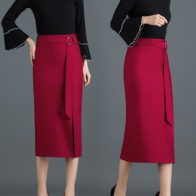 レディース スカート ボトムス タイトスカート 膝下 タイト 細身 ベルト ウエストマーク サイドスリット きれいめ シンプル 大人 上品 おしゃれ お洒落 大人女子 個性的 モード系 セクシー エレガント M L XL 2XL 3XL 黒 ブラック 赤 レッド 無地 春 夏 入学式 入園式 卒業式 卒園式 20代 30代 女性用 ママ オフィス ビジネス OL 通勤 デート お出かけ 女子会 イベント 韓国 韓国系 ファッション コーデ スタイル モテ 美脚 脚長 送料無料 | Rena 韓国ファッション レディースアパレル
