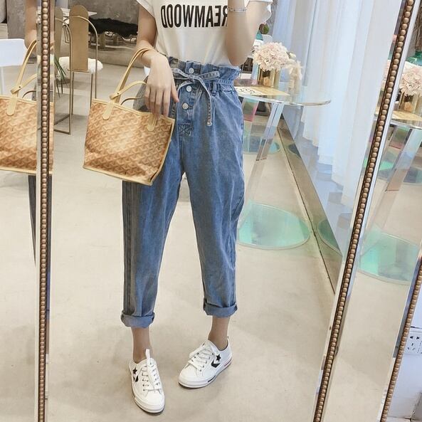 レディース ボトムス パンツ Gパン ズボン クロップドパンツ デニムパンツ カラーパンツ ウエストマーク ウエストリボン ハイウエスト かわいい 大人可愛い カジュアル おしゃれ お洒落 こなれ感 ラフ メンズライク ガーリー ルーズ 個性的 S M L XL 2XL 3XL 4XL 5XL 黒 ブラック 青 ブルー 春カラー 春 夏 10代 20代 女性用 学生 通学 デート アウトドア イベント 着回し 普段使い 韓国 韓国系 オルチャン ファッション スタイル 美脚 脚長 送料無料 | Rena 韓国ファッション レディースアパレル