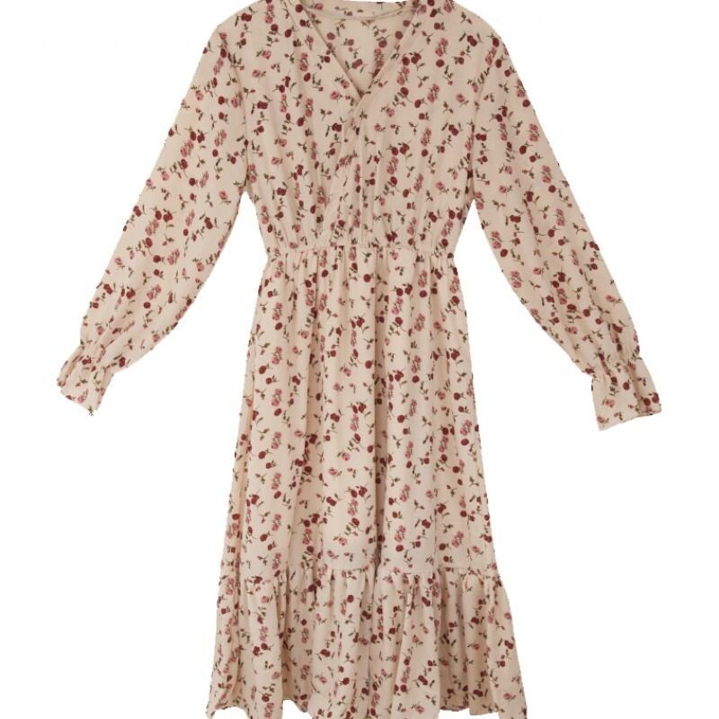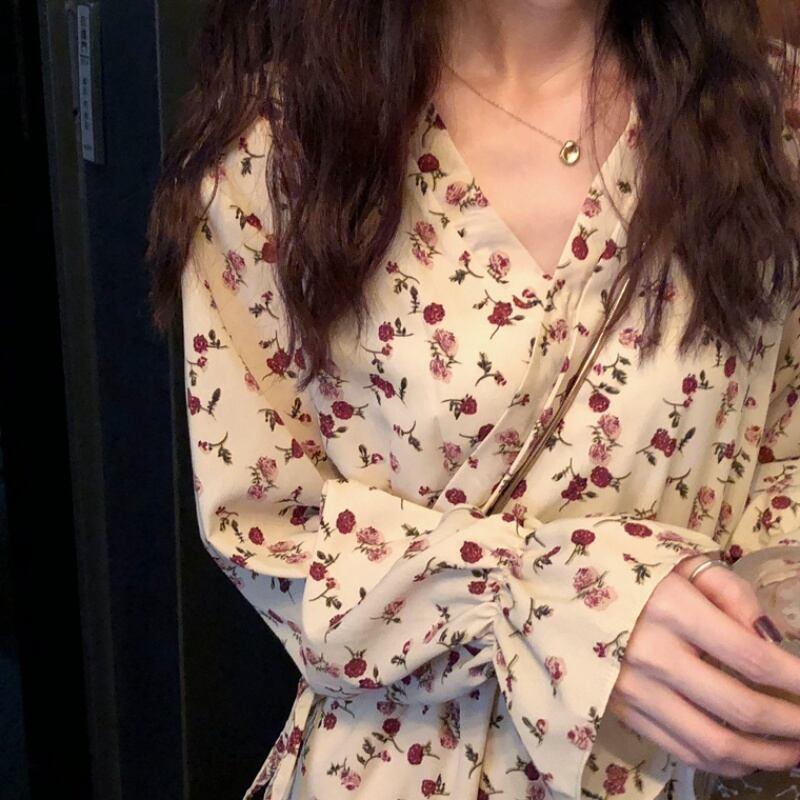 レディース ワンピース フレアワンピース マキシ マキシ丈 袖あり フレアスリーブ Vネック Aライン 裾フレア シフォン フリル ウエストリボン かわいい カジュアル おしゃれ お洒落 レトロ 大人可愛い こなれ感 ラフ ラブリー キュート ガーリー ルーズ 個性的 S M L XL 2XL 3XL 4XL 大人カラー 春カラー 秋カラー 柄 花柄 小花柄 フラワー 春 秋 謝恩会 OL 学生 デート お出かけ 女子会 韓国 韓国系 オルチャン ファッション コーデ 楽ちん モテ 送料無料 | Rena 韓国ファッション レディースアパレル