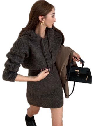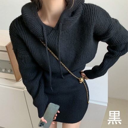 レディース トップス ワンピース ニットソー ミニ ミニ丈 袖あり 長袖 ラウンドネック 細身 ウエストマーク ふわふわ フード付き 厚手 かわいい 大人可愛い きれいめ シンプル 大人 上品 おしゃれ お洒落 大人可愛い 大人女子 こなれ感 セクシー エレガント S M L XL 黒 ブラック 茶色 ブラウン 灰色 グレー 無地 春 秋 冬 10代 20代 30代 40代 女性用 デート お出かけ 女子会 休日 着回し 普段使い ファッション コーデ あったか 暖かい モテ 送料無料 | Rena 韓国ファッション レディースアパレル