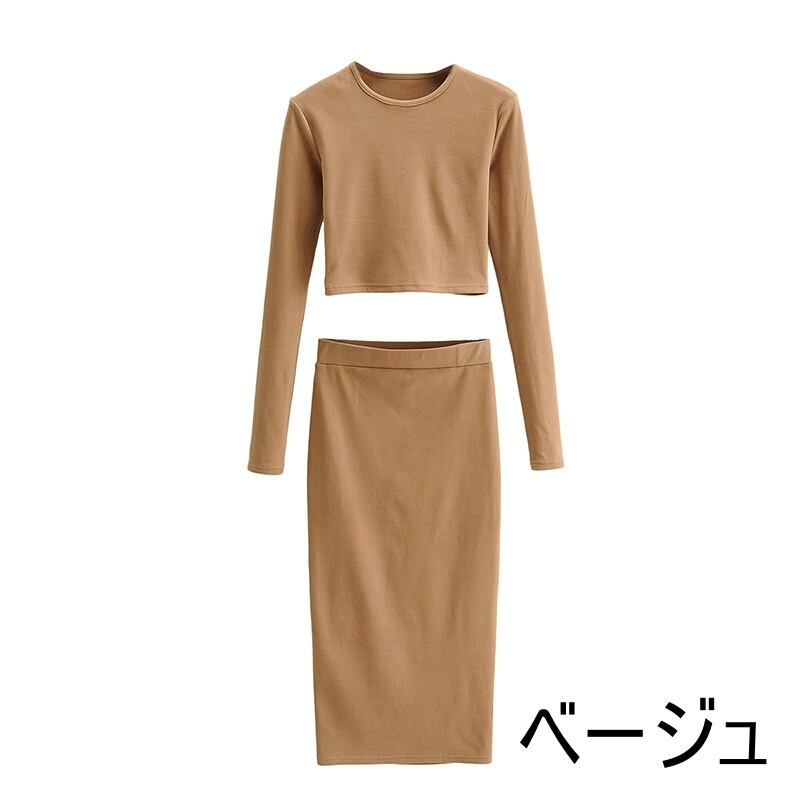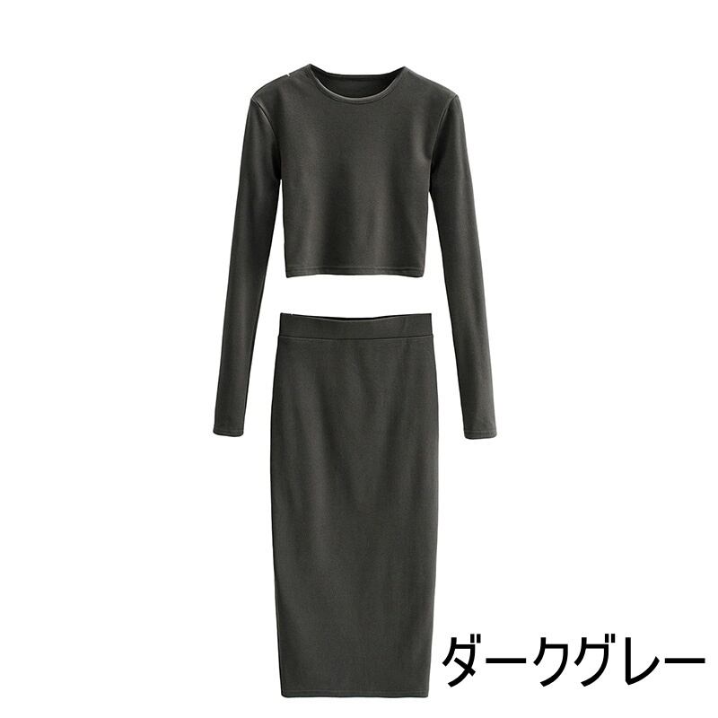 レディース トップス スカート セットアップ ニットソー ロングスカート タイトスカート ニットスカート 膝下 ロング ロング丈 袖あり 半袖 萌袖 Uネック ラウンドネック クルーネック 襟なし スリム タイト 細身 ストレート 伸縮性 ポリエステル 厚手 ベロア 上下セット 2点セット かわいい カジュアル 大人 おしゃれ お洒落 かっこいい モード系 抜け感 S M 黒 ブラック ブラウン 灰色 グレー ベージュ 無地 春 秋 冬 10代 20代 デート お出かけ 女子会 送料無料 | Rena 韓国ファッション レディースアパレル