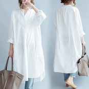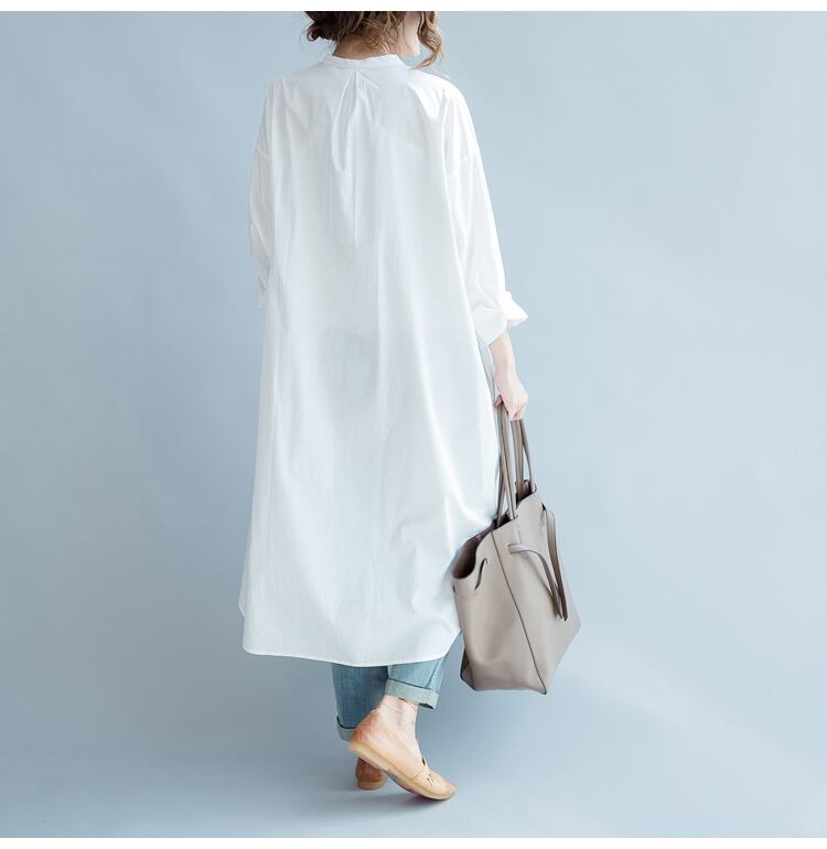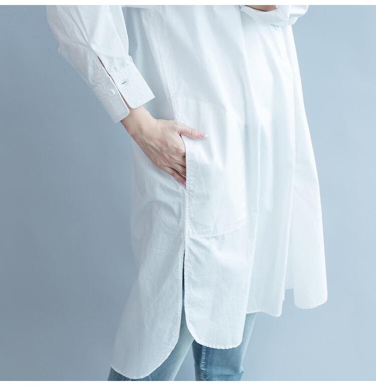 レディース トップス ワンピース シャツ ブラウス カットソー 白シャツ 白トップス 膝下 ロング ロング丈 袖あり 長袖 襟付き ストレート ワイド 透け感 シースルー 薄手 大人可愛い きれいめ シンプル カジュアル 大人 上品 おしゃれ お洒落 大人女子 ラフ フリーサイズ 大きい ゆったり ゆる 白 ホワイト 無地 春 夏 秋 20代 30代 40代 50代 マタニティ 通勤 デート お出かけ 休日 着回し 普段使い 楽ちん 送料無料 | Rena 韓国ファッション レディースアパレル