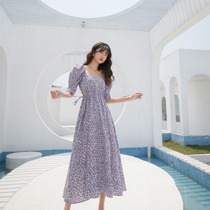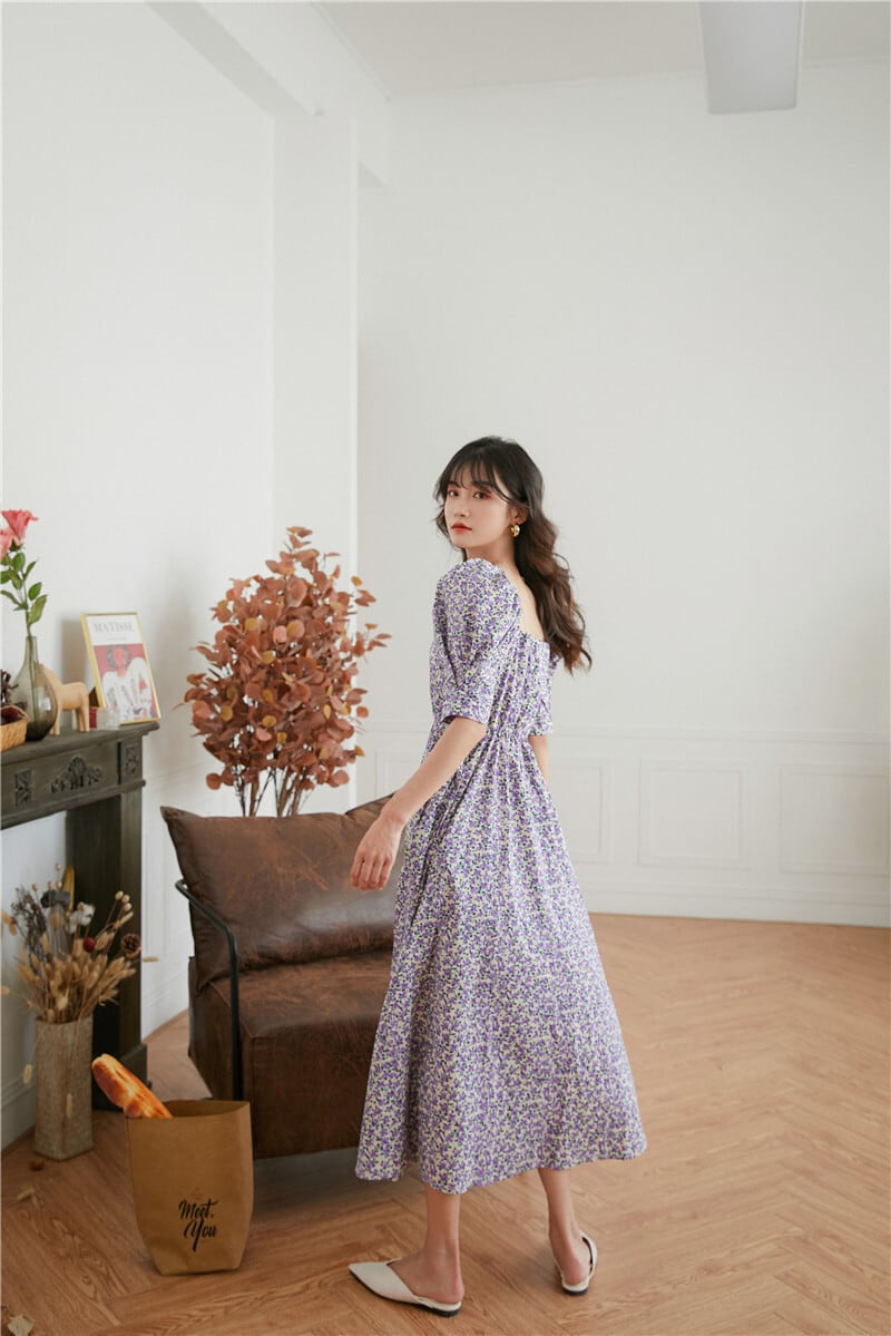 レディース ワンピース シャツ ブラウス フレアワンピース 膝下 ロング ロング丈 袖あり 半袖 スクエアネック 襟なし フレア 細身 Aライン 切り替えデザイン ウエストマーク ポリエステル 薄手 かわいい 大人可愛い きれいめ 大人 おしゃれ お洒落 大人可愛い 大人女子 ラフ キュート S M L ゆったり ゆる 柄 花柄 小花柄 フラワー 春 夏 秋 10代 20代 30代 女性用 デート お出かけ 女子会 お泊まり 休日 普段使い ファッション コーデ スタイル モテ 脚長 送料無料 | Rena 韓国ファッション レディースアパレル