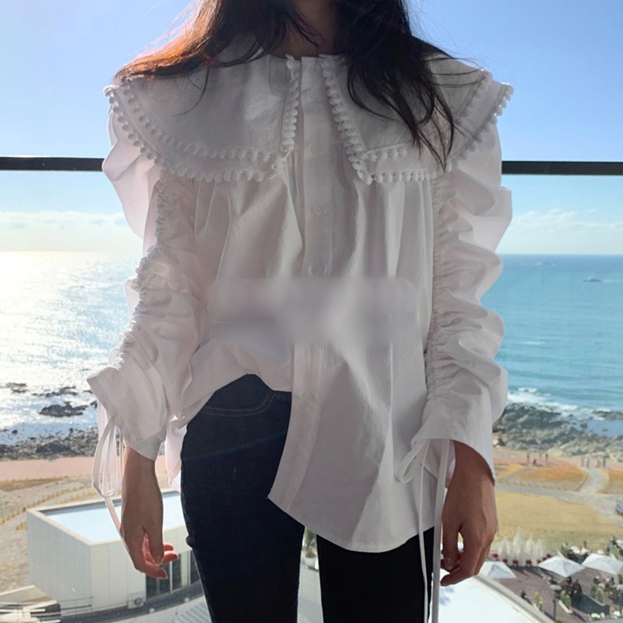レディース トップス シャツ ブラウス カットソー 白シャツ 白トップス 袖あり 長袖 ラウンドネック クルーネック 襟付き フリル 前開き 薄手 かわいい 大人可愛い きれいめ シンプル 大人 上品 おしゃれ お洒落 大人可愛い 大人女子 キュート 個性的 エレガント 主役級 S M L XL 白 ホワイト 無地 春 夏 秋 10代 20代 30代 40代 女性用 通学 デート お出かけ 女子会 お泊まり 休日 旅行 着回し 普段使い ファッション コーデ スタイル モテ 送料無料 | Rena 韓国ファッション レディースアパレル