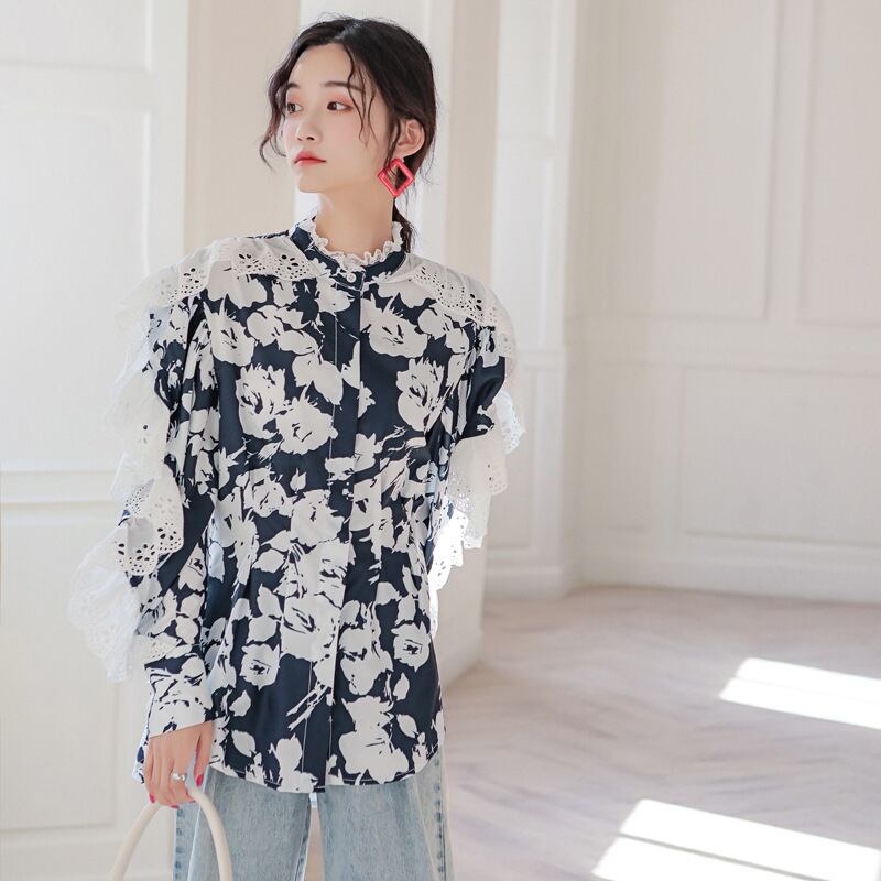 レディース トップス シャツ ブラウス カットソー 袖あり 長袖 ラウンドネック ハイネック クルーネック 襟付き 切り替えデザイン 裾フレア フリル 薄手 かわいい 大人可愛い 大人 上品 おしゃれ お洒落 大人可愛い 大人女子 こなれ感 キュート 個性的 エレガント 存在感 抜け感 S M L 柄 花柄 フラワー 春 夏 秋 10代 20代 30代 通勤 デート お出かけ 女子会 お泊まり 休日 旅行 着回し 普段使い ファッション コーデ スタイル 送料無料 | Rena 韓国ファッション レディースアパレル