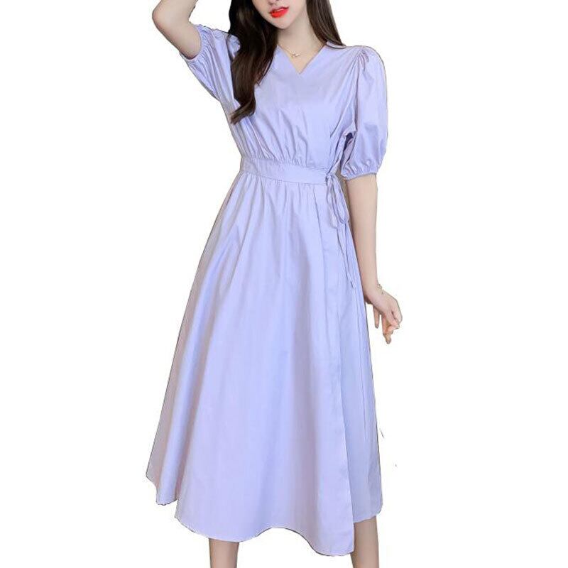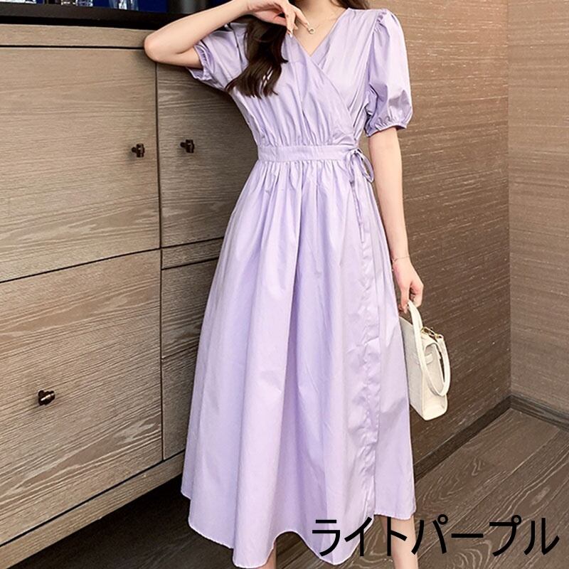 レディース ワンピース シャツ ブラウス カットソー 白シャツ シャツワンピース ミモレ ミモレ丈 ロング ロング丈 袖あり 半袖 Vネック 襟なし Aライン ウエストリボン 薄手 かわいい 大人可愛い きれいめ シンプル 大人 上品 おしゃれ お洒落 大人可愛い 大人女子 ラブリー キュート M L XL 2XL 3XL 4XL 白 ホワイト 紫 パープル 無地 春 夏 秋 10代 20代 30代 デート お出かけ 女子会 お泊まり 休日 旅行 就活 普段使い ファッション 送料無料 | Rena 韓国ファッション レディースアパレル