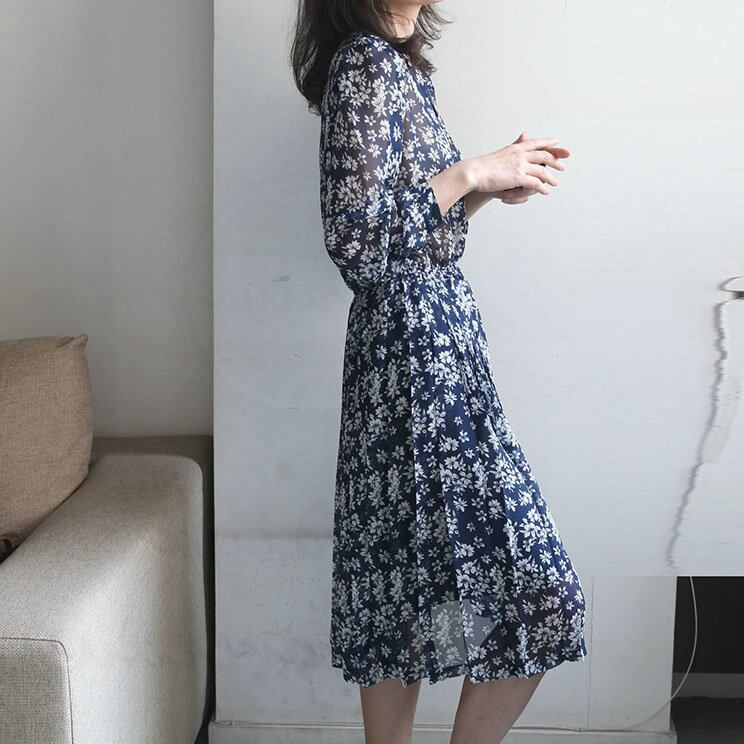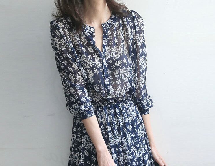 レディース ワンピース ブラウス カットソー 膝丈 ひざ丈 袖あり 長袖 Uネック ラウンドネック クルーネック 襟なし 細身 プリーツ シフォン ウエストマーク 透け感 シースルー ポリエステル 薄手 大人可愛い きれいめ 大人 上品 おしゃれ お洒落 大人可愛い 大人女子 S M L XL 2XL 3XL 4XL 5XL 柄 花柄 小花柄 フラワー 春 夏 秋 10代 20代 30代 40代 50代 オフィス OL 通勤 デート お出かけ 女子会 休日 着回し 普段使い モテ 送料無料 | Rena 韓国ファッション レディースアパレル
