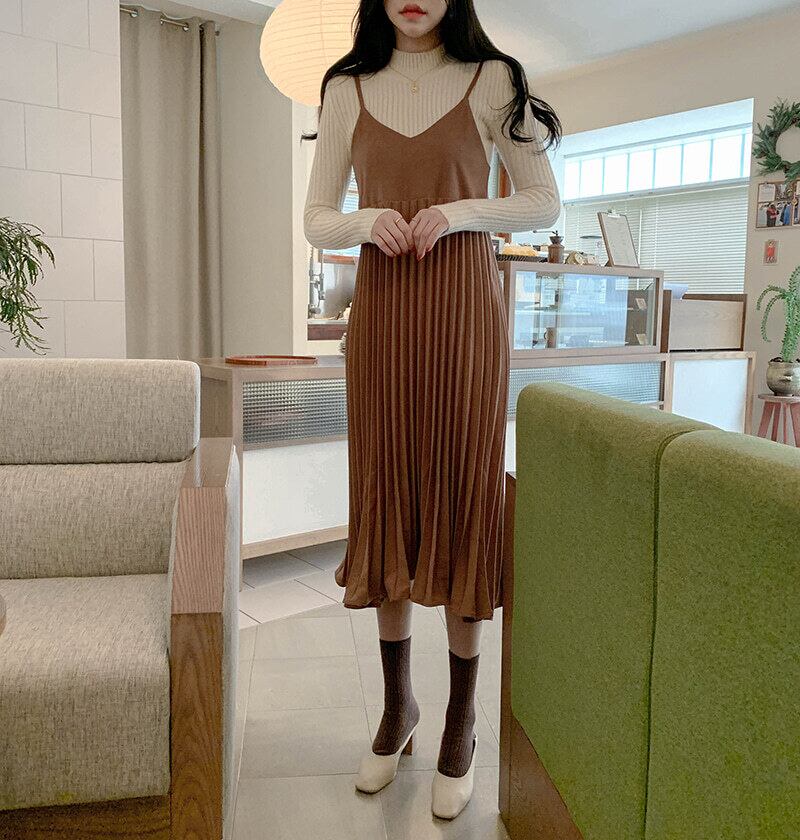 レディース ワンピース キャミソール ミモレ ミモレ丈 袖なし ノースリーブ Vネック スクエアネック 襟なし フレア 細身 Aライン プリーツ ポリエステル 大人可愛い きれいめ 大人 上品 おしゃれ お洒落 大人可愛い 大人女子 S M L XL ゆったり 黒 ブラック 青 ブルー 茶色 ブラウン 無地 春 夏 秋 10代 20代 30代 40代 女性用 OL 通勤 デート お出かけ 女子会 お泊まり 休日 旅行 着回し 普段使い 重ね着 スタイル モテ 送料無料 | Rena 韓国ファッション レディースアパレル