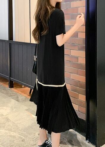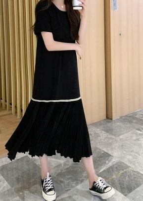 レディース ワンピース シャツ ブラウス カットソー ミモレ ミモレ丈 ロング ロング丈 袖あり 半袖 Uネック ラウンドネック クルーネック 襟なし フレア Aライン マーメイド 切り替えデザイン プリーツ 切り替えデザイン 綿 かわいい 大人可愛い カジュアル 大人 おしゃれ お洒落 大人可愛い 大人女子 ラフ S M L XL 2XL 3XL ゆったり ゆる 黒 ブラック 無地 春 夏 秋 10代 20代 30代 40代 お出かけ 女子会 お泊まり 休日 普段使い 送料無料 ゆったり | Rena 韓国ファッション レディースアパレル