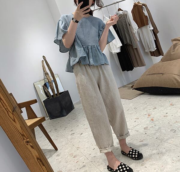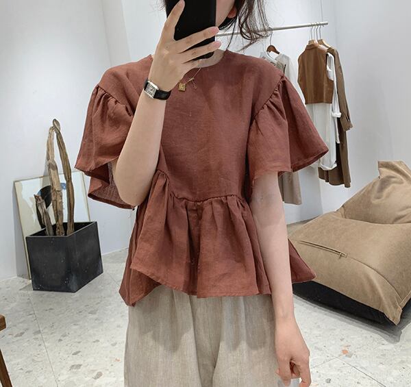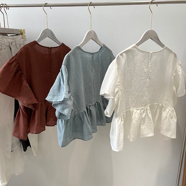 レディース トップス シャツ ブラウス カットソー 白トップス 袖あり 半袖 ボリューム袖 Uネック ラウンドネック クルーネック 襟なし 切り替えデザイン 裾フレア フリル 切り替えデザイン 透け感 薄手 かわいい 大人可愛い カジュアル 大人 おしゃれ お洒落 エスニック 大人可愛い 大人女子 ラフ フリーサイズ 白 ホワイト 赤 レッド 青 ブルー 無地 春 夏 秋 10代 20代 30代 40代 通勤 お出かけ 女子会 お泊まり 休日 着回し 普段使い 体系カバー 送料無料 | Rena 韓国ファッション レディースアパレル