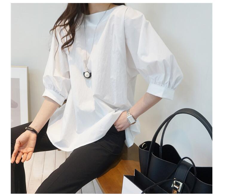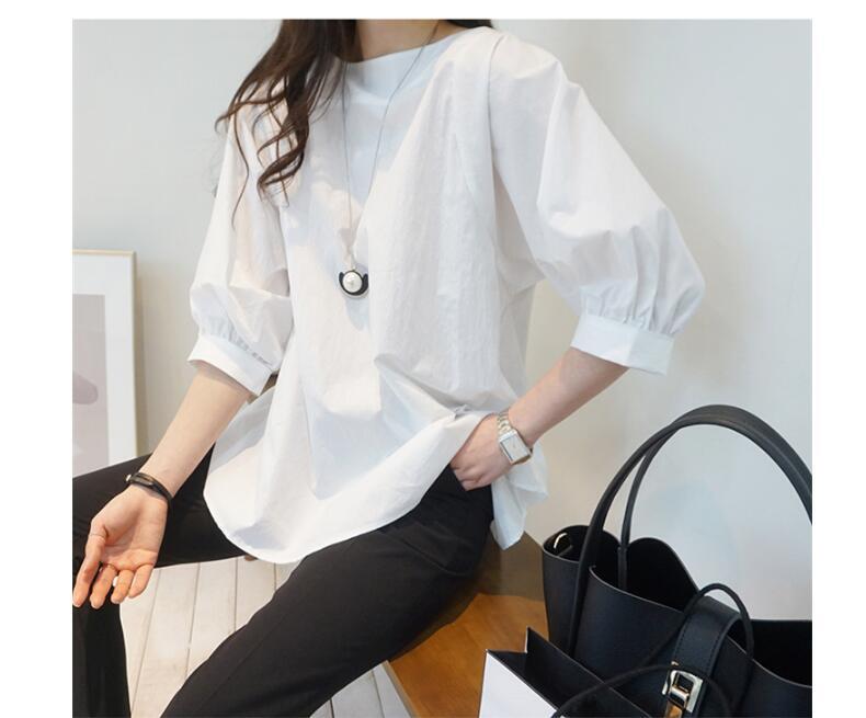 レディース トップス シャツ ブラウス カットソー 白シャツ 白トップス 袖あり 半袖 5分袖 五分袖 Uネック ラウンドネック クルーネック 襟なし 綿 ポリエステル 大人可愛い きれいめ 大人 上品 おしゃれ お洒落 かっこいい 大人可愛い 大人女子 エレガント S M L XL ゆったり 白 ホワイト ベージュ 無地 春 夏 秋 10代 20代 30代 40代 50代 女性用 オフィス OL 通勤 デート お出かけ 女子会 休日 着回し 普段使い ファッション コーデ スタイル 送料無料 | Rena 韓国ファッション レディースアパレル