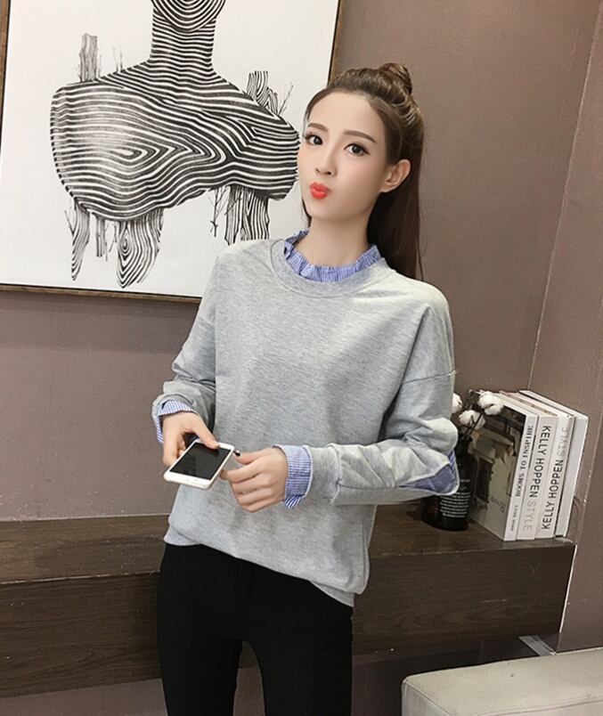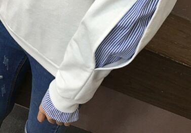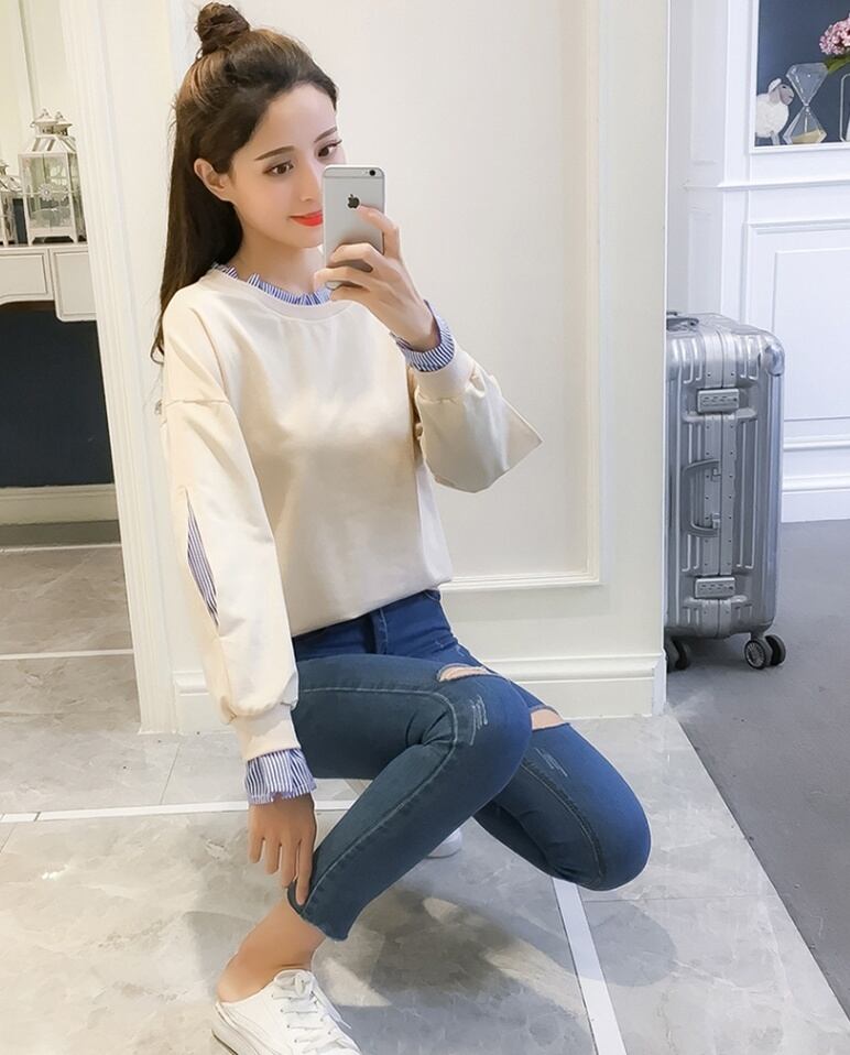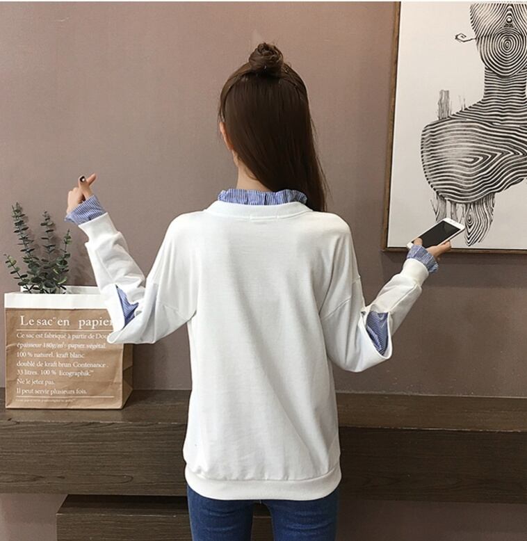 レディース トップス シャツ カットソー プルオーバー トレーナー 袖あり 長袖 襟付き ドッキング 裾フレア フリル かわいい きれいめ シンプル カジュアル おしゃれ かっこいい 大人女子 こなれ感 ラフ ボーイッシュ S M L XL 2XL 3XL 4XL 大きいサイズ 白 黒 グレー アプリコット ストライプ 春 秋 10代 20代 30代 ママ 通勤 学生 通学 デート お出かけ 公園デビュー 女子会 休日 アウトドア 旅行 普段使い 韓国系 ファッション コーデ 楽ちん 送料無料 | Rena 韓国ファッション レディースアパレル