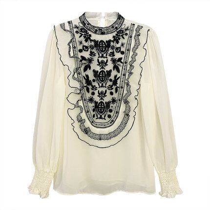 ウエスタンな刺繍が目を惹くシフォンシャツ。