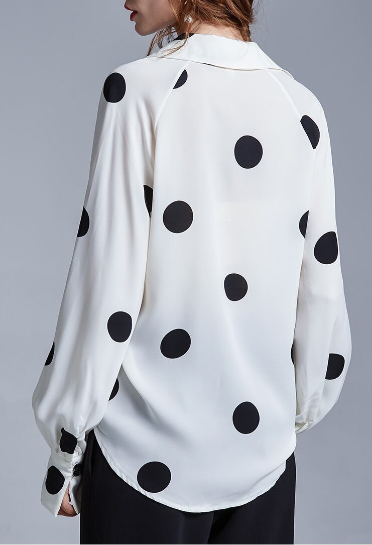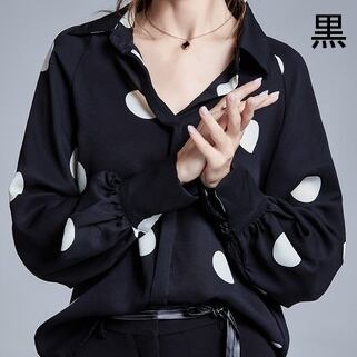 レディース シャツ ブラウス 袖あり 長袖 襟付き 前開き かわいい 大人可愛い シンプル カジュアル 大人 上品 おしゃれ かっこいい レトロ 大人女子 こなれ感 とろみ感 S M L XL 2XL ゆったり 白 ホワイト 黒 ブラック 柄 ドット柄 水玉 春 秋 20代 30代 40代 ママ OL デート お出かけ 公園デビュー 女子会 イベント 旅行 普段使い ファッション コーデ スタイル 送料無料 | Rena 韓国ファッション レディースアパレル