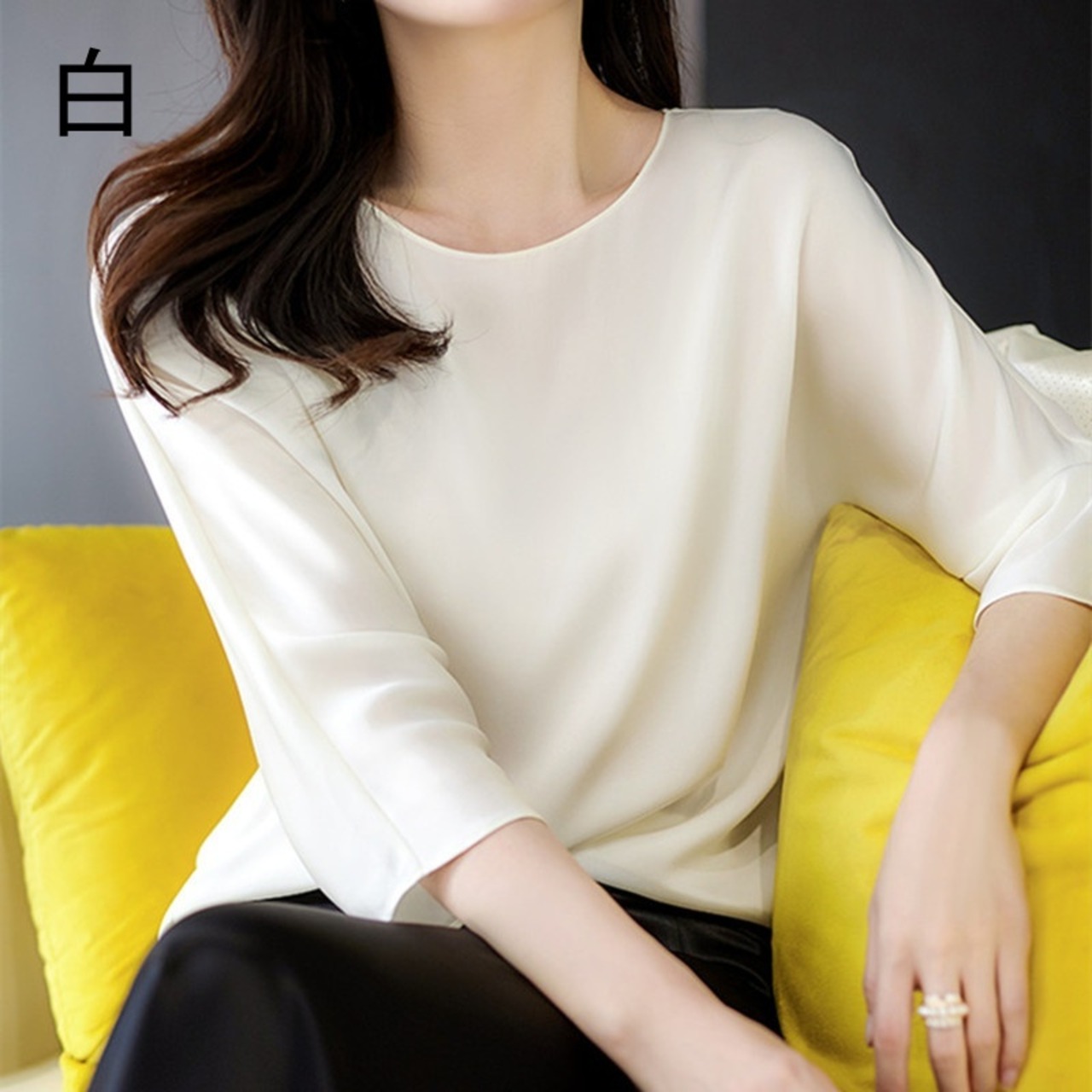 レディース トップス シャツ ブラウス カットソー 袖あり 7分袖 ラウンドネック きれいめ シンプル カジュアル 大人 上品 おしゃれ かっこいい 大人女子 こなれ感 エレガント S M L XL 2XL 3XL 白 ホワイト 青 ブルー ピンク アプリコット 無地 春 秋 20代 30代 ママ オフィス ビジネス OL 通勤 デート お出かけ 女子会 パーティー 旅行 ファッション コーデ スタイル 送料無料 | Rena 韓国ファッション レディースアパレル