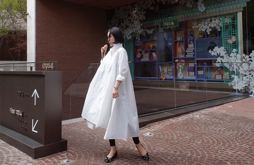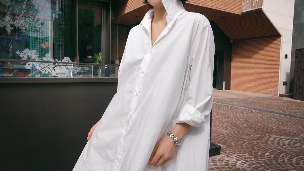 レディース ワンピース シャツワンピース ミモレ ミモレ丈 半端丈 袖あり 長袖 襟付き Aライン 大人可愛い きれいめ シンプル カジュアル 大人 上品 おしゃれ 大人可愛い ラフ クール モード系 S M L XL 白 ホワイト 黒 ブラック 無地 春 秋 20代 30代 40代 OL 学生 デート お出かけ 女子会 休日 旅行 韓国系 ファッション コーデ スタイル 送料無料 | Rena 韓国ファッション レディースアパレル