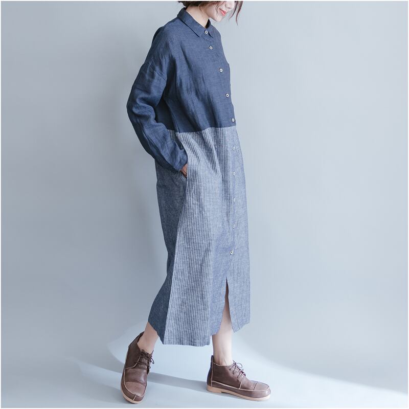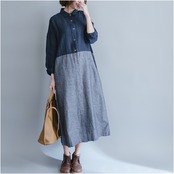 レディース ワンピース シャツワンピース デニムワンピース 大人可愛い カジュアル 大人 おしゃれ 大人女子 L XL バイカラー ストライプ デート お出かけ 女子会 休日 普段使い 送料無料 | Rena 韓国ファッション レディースアパレル