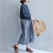デニム地のバイカラーワンピースです。