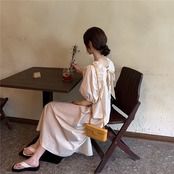 後ろのリボンと大き目のパフスリーブがガーリーなワンピース。